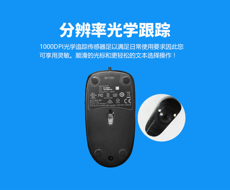 Logitech M100R ratón con cable máquina de escritorio USB portátil oficina de negocios en casa ratón de la computadora promoción al por mayor