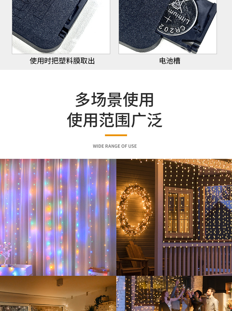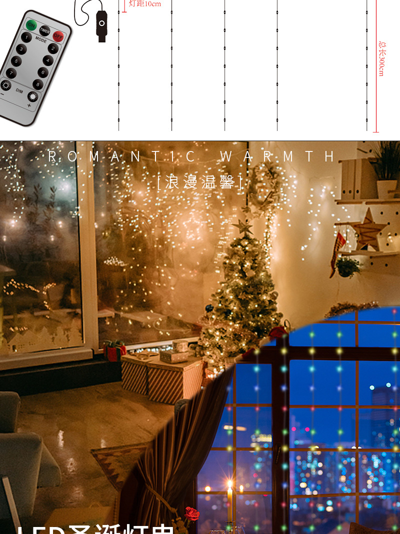 | Colores de luz | Luz de cortina de alambre de cobre-blanco cálido,Luz de cortina de alambre de cobre-luz de color |