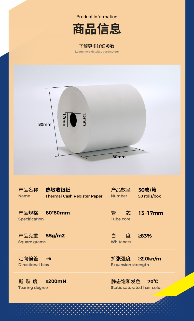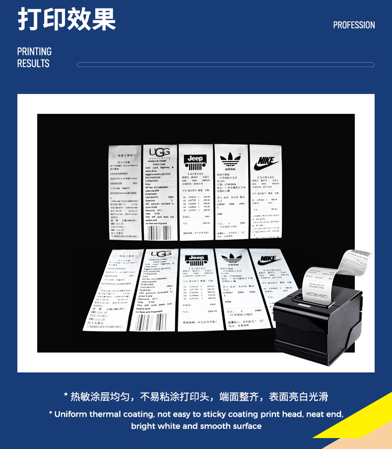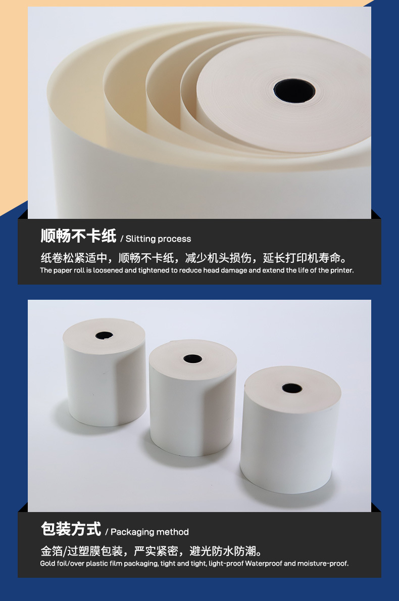 Papel de caja registradora térmica 80*80 papel de impresión de boletos de supermercado 80 papel único para llevar EE. UU. 55g papel ultrafino 80x80