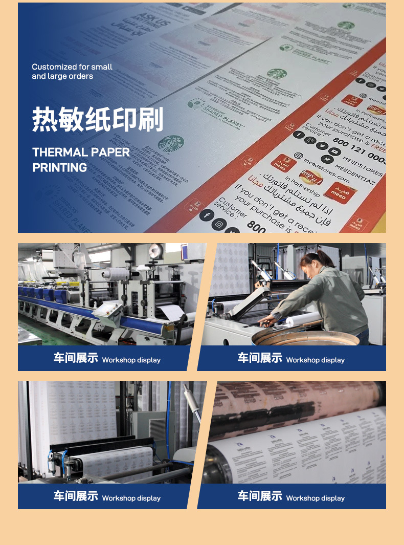Los fabricantes envían papel de caja registradora térmica 57x50 Meituan papel de impresión para llevar 80x80 Papel de recibo de cocina de supermercado