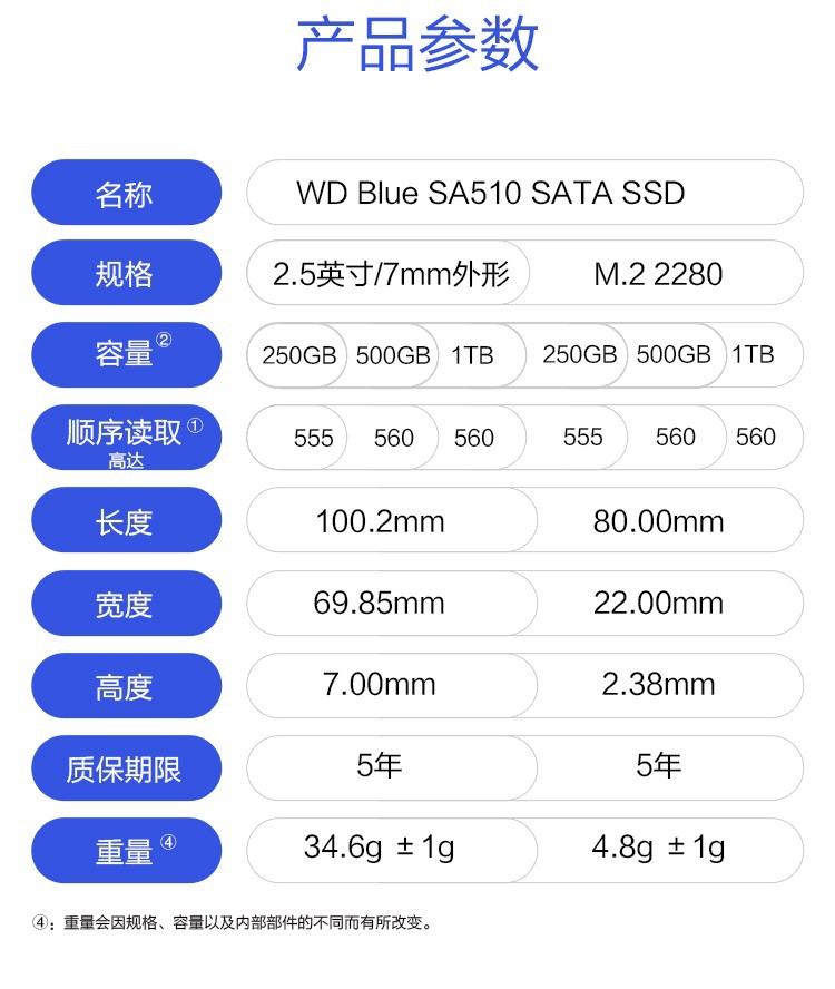 | Capacidad | Placa verde 240g (WDS240G3GOA),Placa verde 480g (WDS480G3GOA),Placa verde 1T(WDS100T3G0A),Placa verde 2T(WDS200T2G0A),Disco azul SA 510 250G(WDS250G3BOA),Disco azul SA 510 500G(WDS500G3BOA),Disco azul SA510 1T(WDS100T3BOA),Disco azul 3D Versión Avanzada 2T(WDS200T2B0A),Disco azul 3D Versión avanzada 4T(WDS400T2B0A),Disco azul SA510 4T(WDS400T3B0A) |
