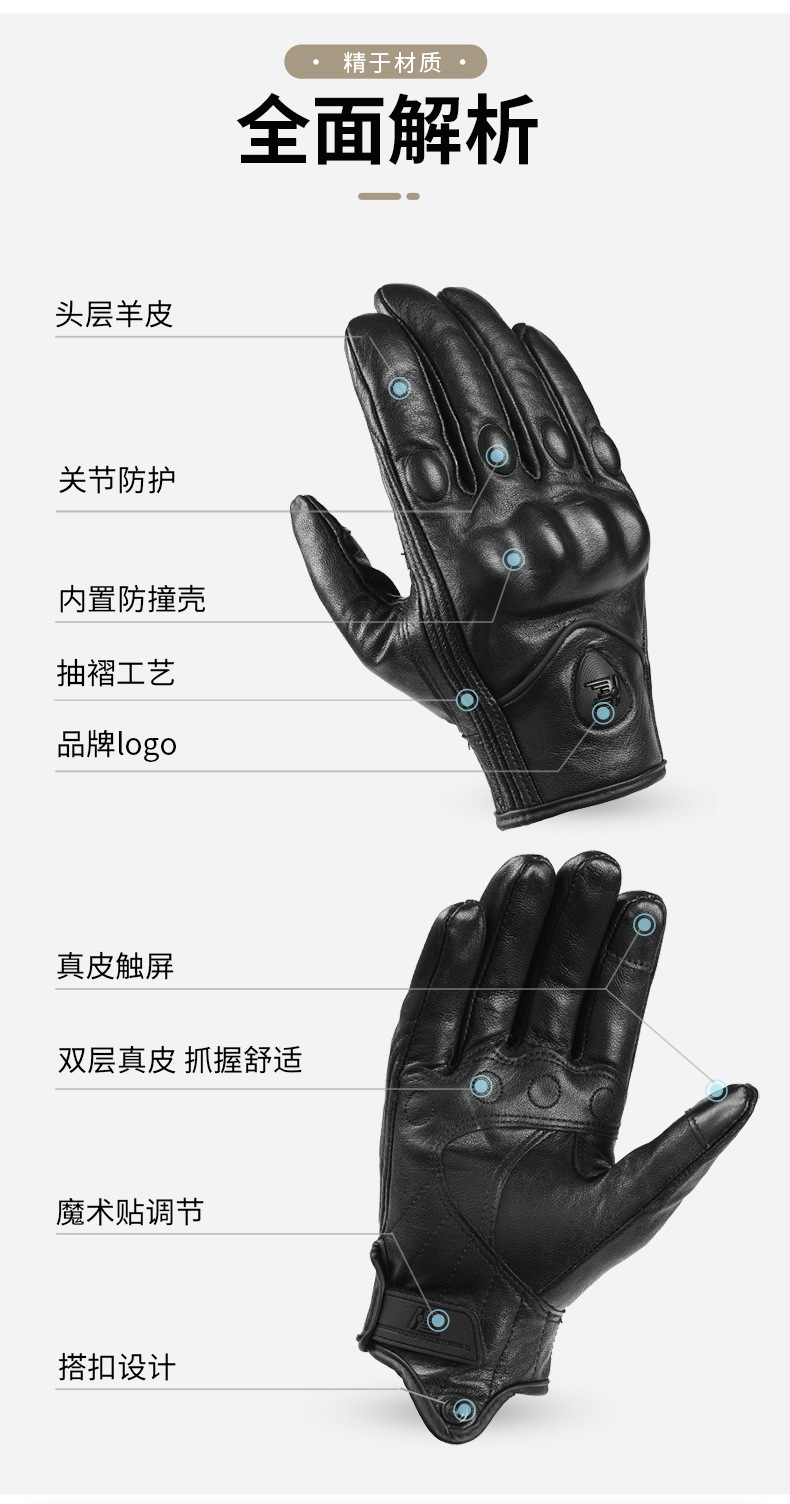 Motocicleta motocicleta de cuero genuino transfronterizo de equitación guantes calientes pantalla táctil hombres y mujeres al aire libre de los hombres retro Harley Four Seasons protección
