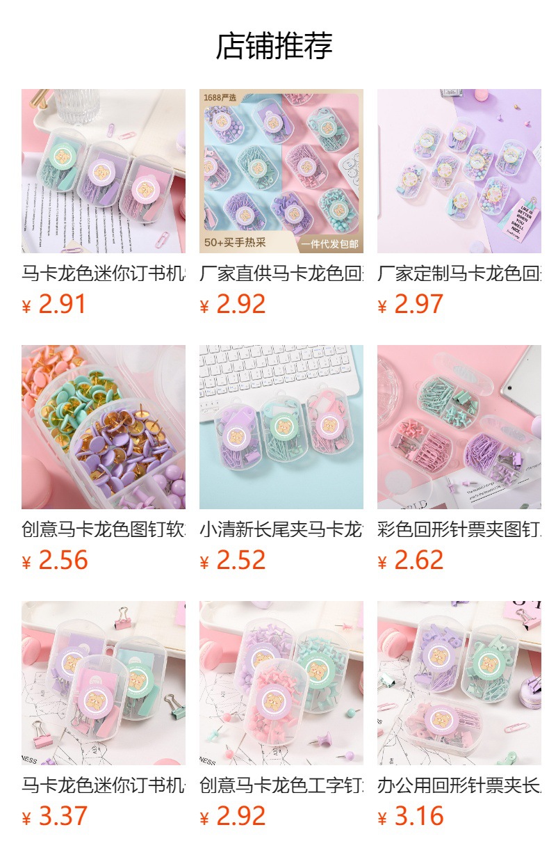 | Método de embalaje | Pequeña caja colgante de tres rejillas (clip de papel + clip de cola larga + clip de cabeza redonda) |