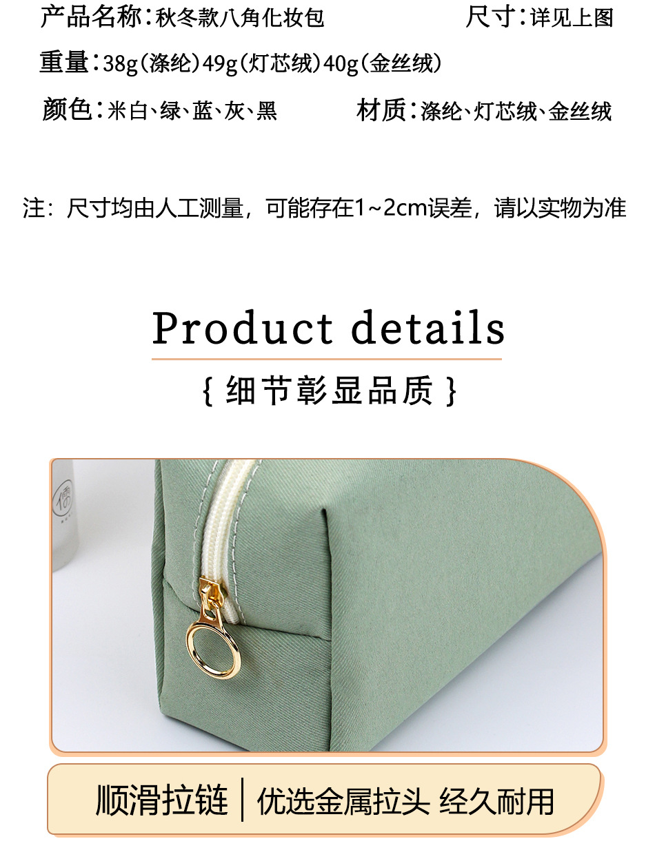 外贸灯芯绒女士八角化妆包 大容量便携手拎收纳袋 旅行洗漱包批发