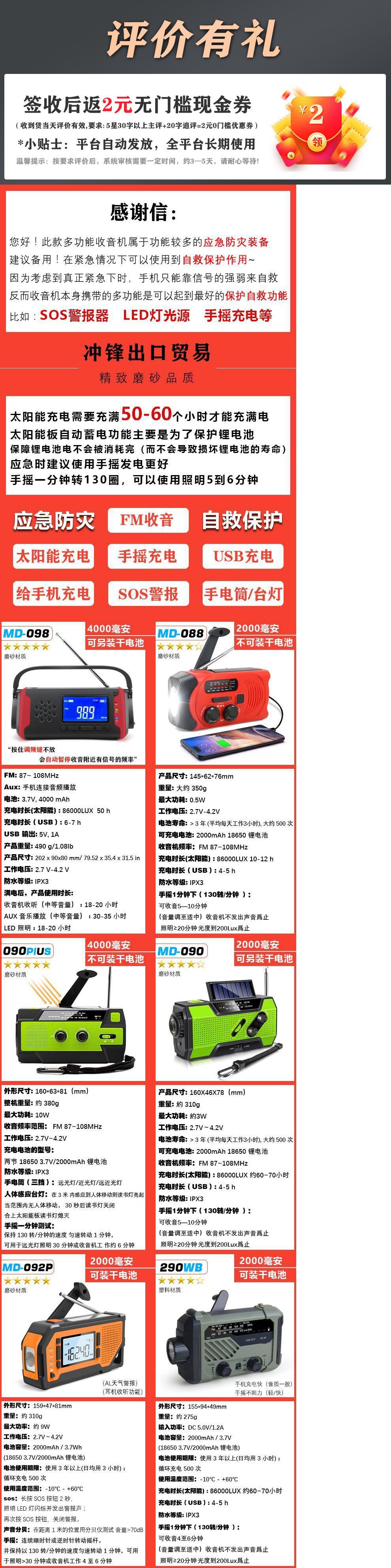 | Color | 290 negro y verde + batería seca + alarma sos,290 negro y verde + bolsa táctica multifunción gratis,090P verde + linterna lámpara + SOS alarma,090P rojo + linterna lámpara + SOS alarma,090P naranja + linterna lámpara + SOS alarma,090P negro + lámpara de Linterna + alarma sos,580 gris plata + 5000 mA + Bluetooth,580 rojo + 5000 mA + Bluetooth,580 Naranja + 5000 mA + Bluetooth,580 negro + 5000 mA + Bluetooth,299 Rojo + 5000 mA + lámpara de mesa linterna,299 naranja + 5000 mA + linterna lámpara de mesa,092P rojo + batería seca + auricular,092P Verde + batería seca + auriculares enchufables,092P Amarillo + batería seca + auricular,088P Rojo + Linterna + SOS Alarma,088 Rojo + sacudida de mano + carga solar + linterna,098 Naranja + 4000 mA + linterna,098 Verde + 4000 mA + linterna,098 Rojo + 4000 mA + linterna,096 rojo + Bluetooth + SOS alarma,096 negro + Bluetooth + SOS alarma,096 Verde + Bluetooth + SOS Alarma,D6 Rojo + 4000 mA + auriculares enchufables,D6 verde + 4000 mA + auriculares enchufables,D6 negro + 4000 mA + auriculares enchufables,D6 azul + 4000 mA + auriculares enchufables,369 Rojo + Radio + mano generación de energía + Banco de la energía,369 amarillo + Radio + generación de energía de mano + Banco de energía,MARCA Rojo + 5000 mA + Banco de la energía,MARCA Verde + 5000 mA + Power Bank,Paquete táctico multifuncional [sin radio]-Precio de cambio 30 |