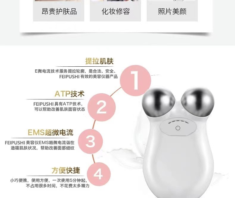 Instrumento de belleza limpieza facial masajeador de fotones elevación EMS rejuvenecimiento de la piel lavado facial instrumento de limpieza calor cálido exportación instrumento de importación