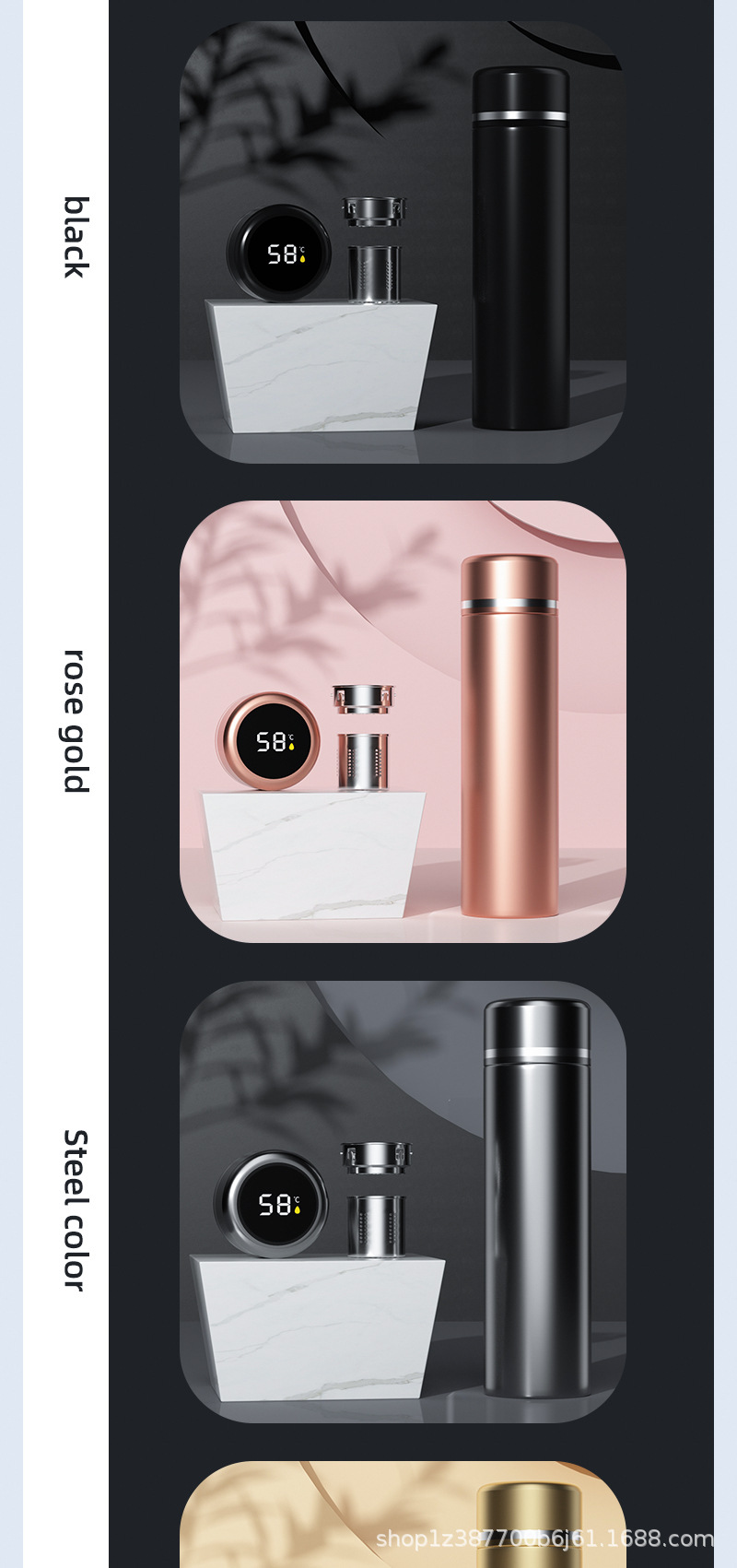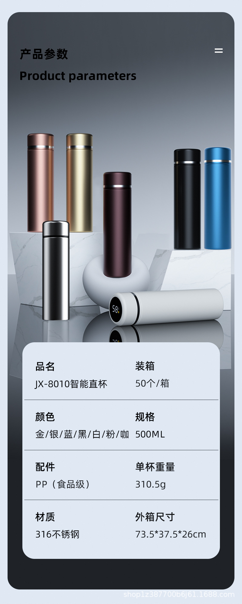 | Colores | Negro [Cubierta de una pieza 450ML],Azul [Cubierta de una pieza 450ML],Negro 304 [Cubierta ordinaria],Blanco 304 【Cubierta ordinaria】,Plata 304 [Cubierta ordinaria],Rosa 304 [Cubierta ordinaria],Rojo 304 [Cubierta ordinaria],Azul 304 [Cubierta ordinaria],Negro 304 [cubierta de temperatura],Blanco 304 【Cubierta de termidad】,Plata 304 [cubierta de temperatura],Rosa 304 [cubierta de temperatura],Rojo 304 [cubierta de temperatura],Azul 304 [cubierta de temperatura],Pintura superior brillante azul 316 [cubierta de temperatura],Pintura superior brillante negra 316 [cubierta de temperatura],Pintura superficial brillante blanca 316 [cubierta de temperatura],Pintura brillante rosa 316 [cubierta de temperatura],Pintura de goma roja 316 [cubierta de temperatura],Pintura de goma azul 316 [cubierta de temperatura],Pintura de goma negra 316 [cubierta de temperatura],Pintura de goma blanca 316 [cubierta de temperatura],Pintura de goma rosa 316 [cubierta de temperatura],Boutique de actualización blanca 316 [estilo ordinario],Silver Upgrade Boutique 316 [Normal],Black Upgrade Boutique 316 [Normal],Gold Upgrade Boutique 316 [Modelo ordinario],Color café actualización boutique 316 [estilo ordinario],Pink Upgrade Boutique 316 [Normal],Boutique de actualización azul 316 [modelo ordinario],Boutique de actualización blanca 316 [modelo de visualización de temperatura],Silver Upgrade Boutique 316 [Vigila la temperatura],Black Upgrade Boutique 316 [Modelo de visualización de temperatura],Gold Upgrade Boutique 316 [Vibra la temperatura],Color café actualización boutique 316 [modelo de visualización de temperatura],Pink Upgrade Boutique 316 [Modelo de visualización de temperatura],Boutique de actualización azul 316 [modelo de visualización de temperatura] |