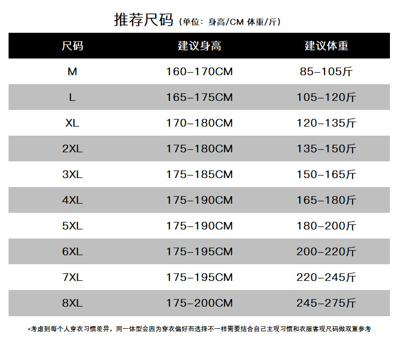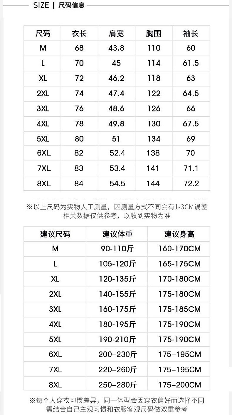 | Talla | M,L,XL,XXL,XXXL,4XL,5XL,6XL,7XL,8XL |