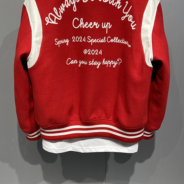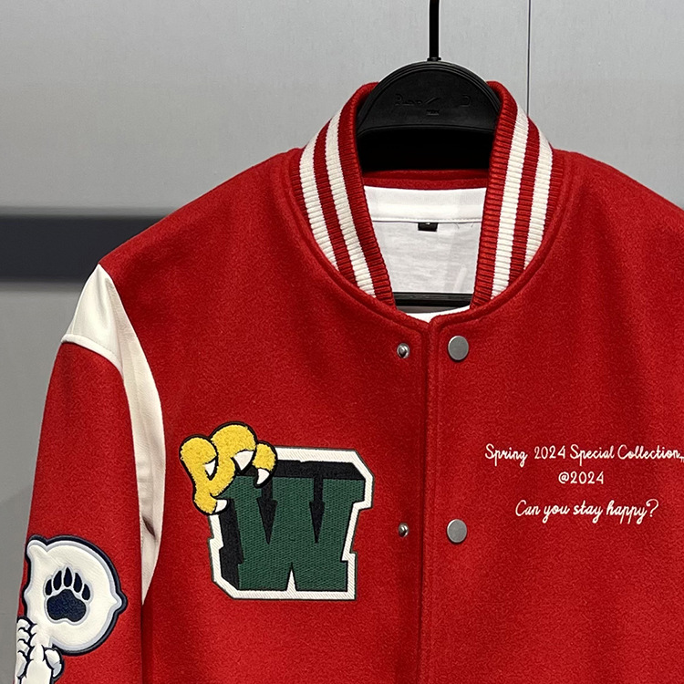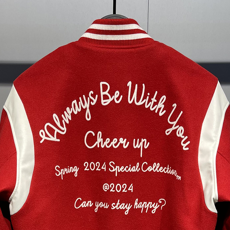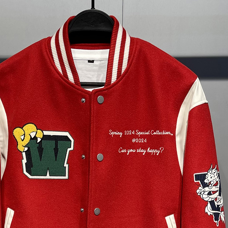Chaqueta roja de los hombres la chaqueta 2024 primavera Año del collar soporte costura bordado Americano pareja uniforme béisbol