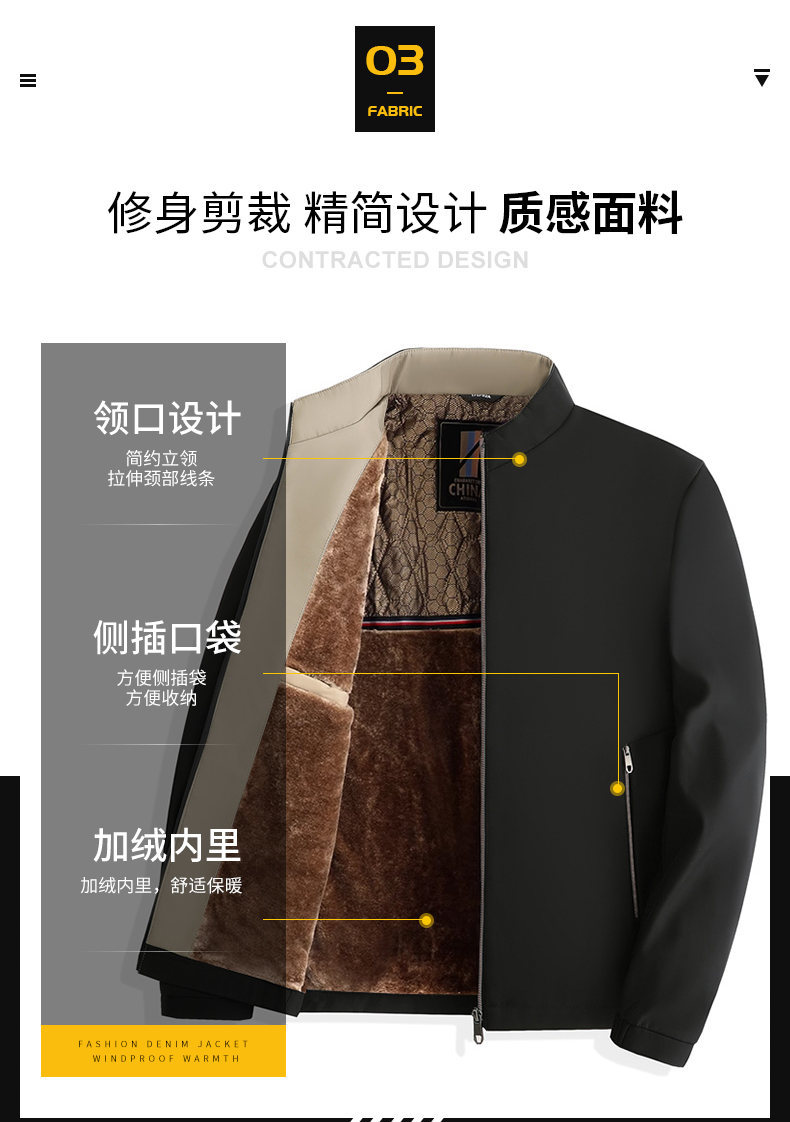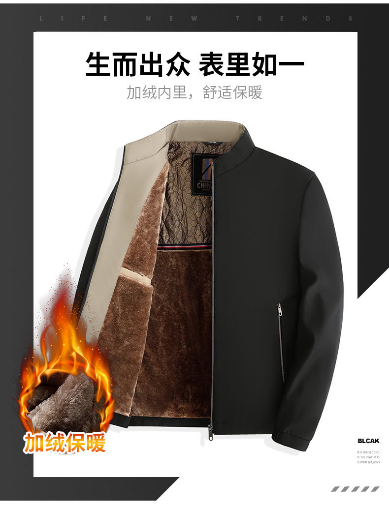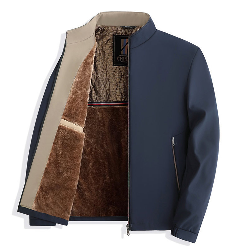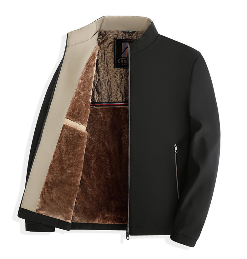 Otoño e Invierno nueva chaqueta de cuello alto para hombres de mediana edad y ancianos forrada de lana engrosada cálido papá ropa de invierno fuera de la entrega de una sola pieza