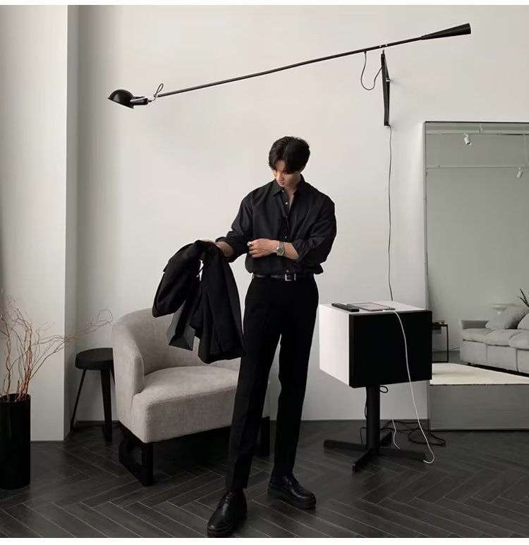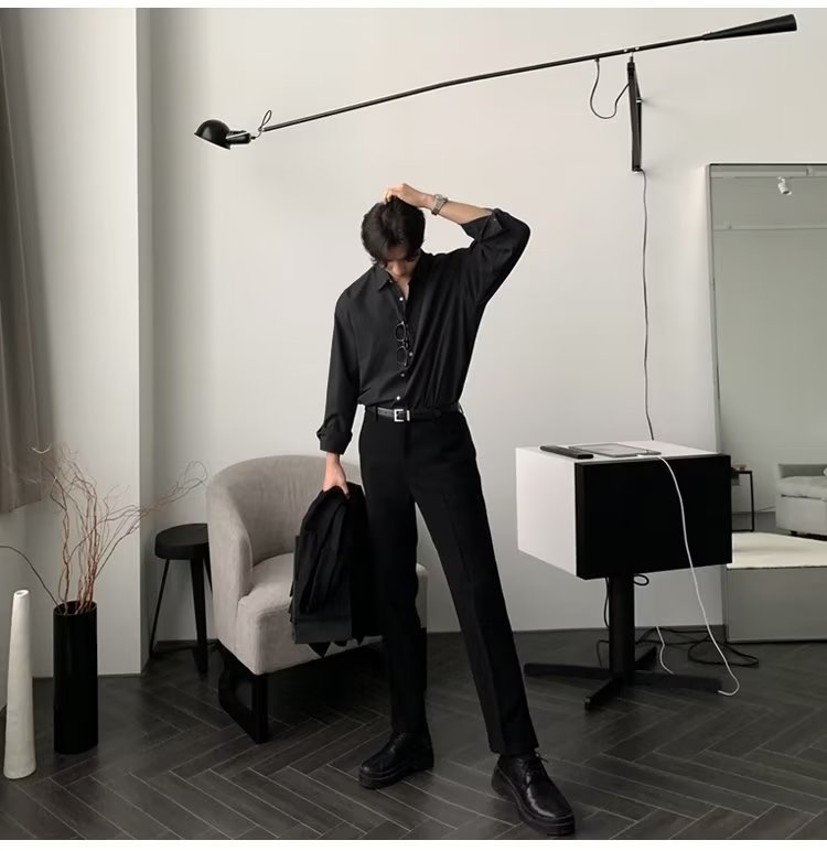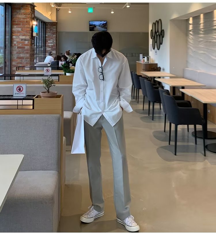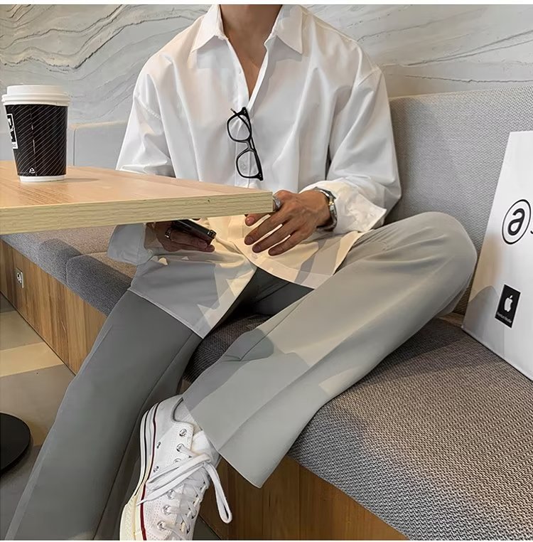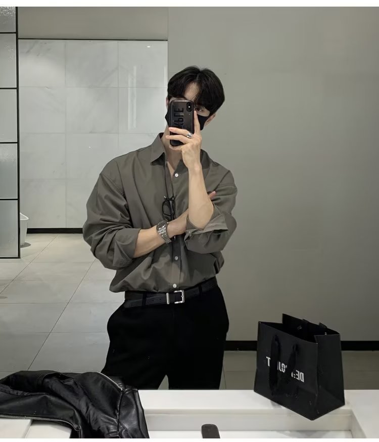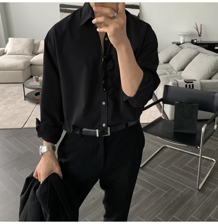 Camisa de manga larga estilo coreano drapeado camisa suelta de alta gama