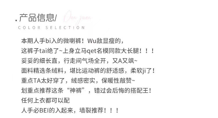 | Artículo No. | Pantalones acampanados |