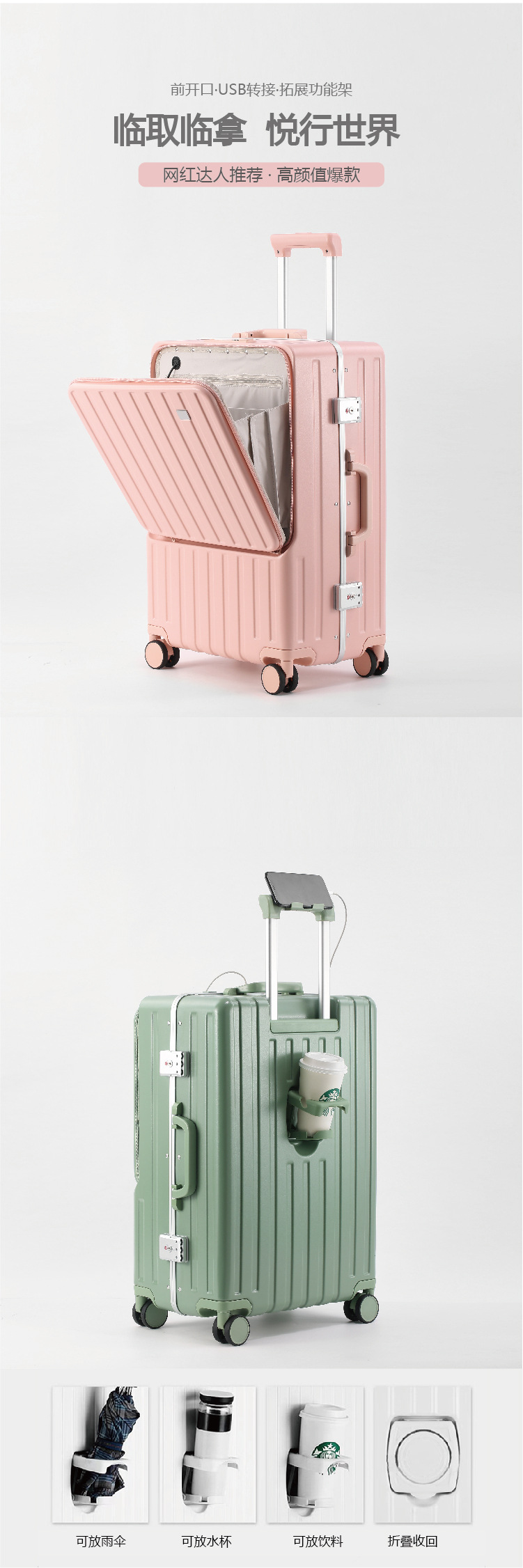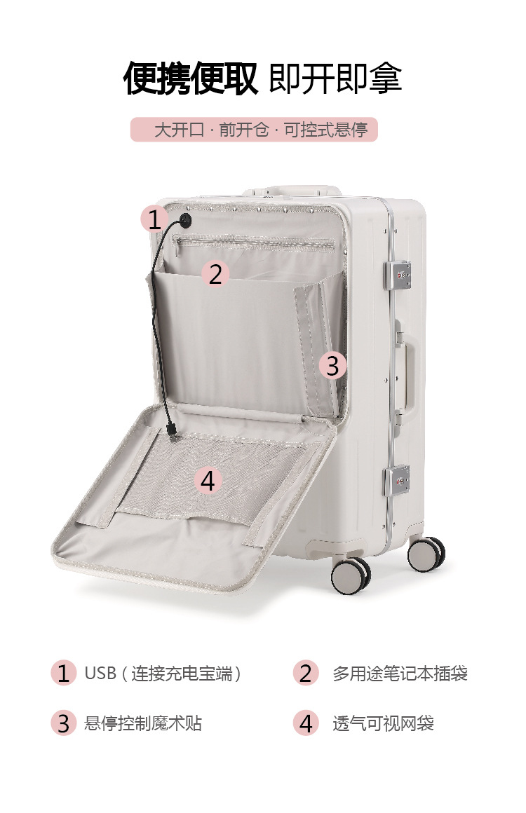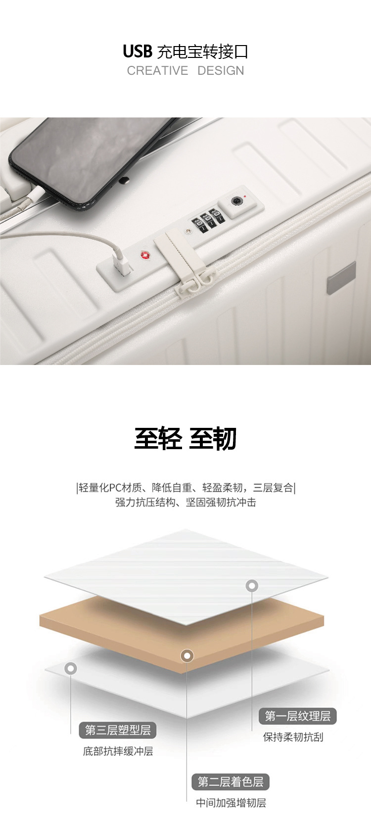 侧边2个锁扣,顶部密码锁带usb充电接口
