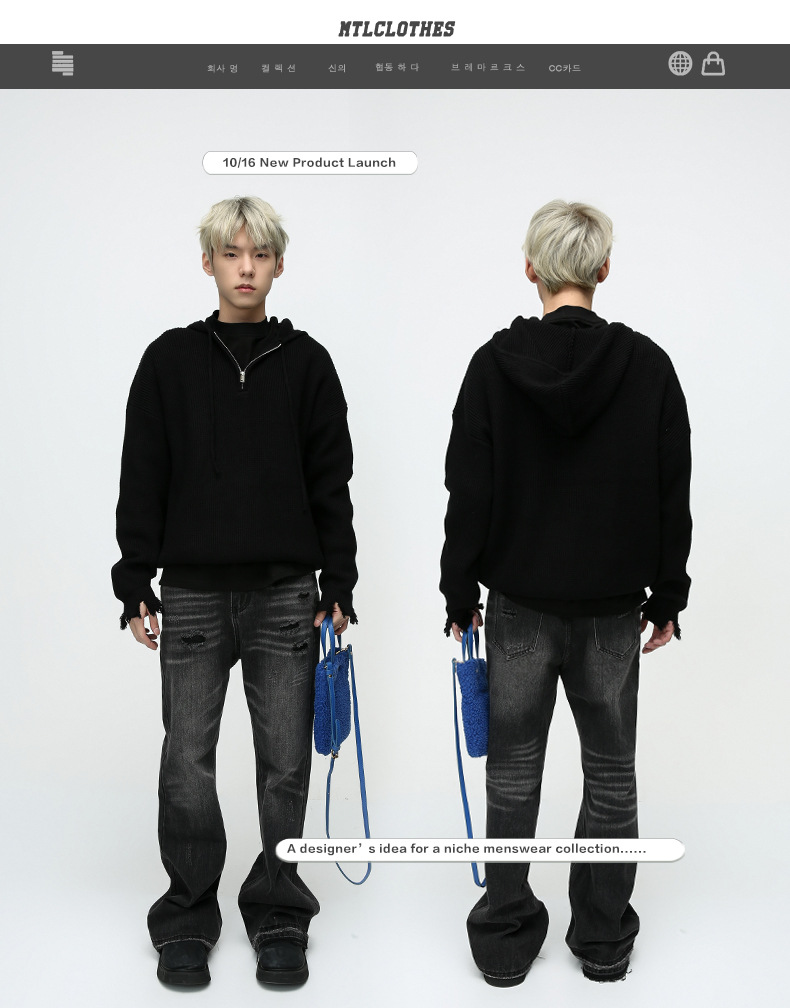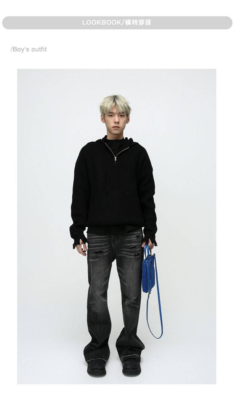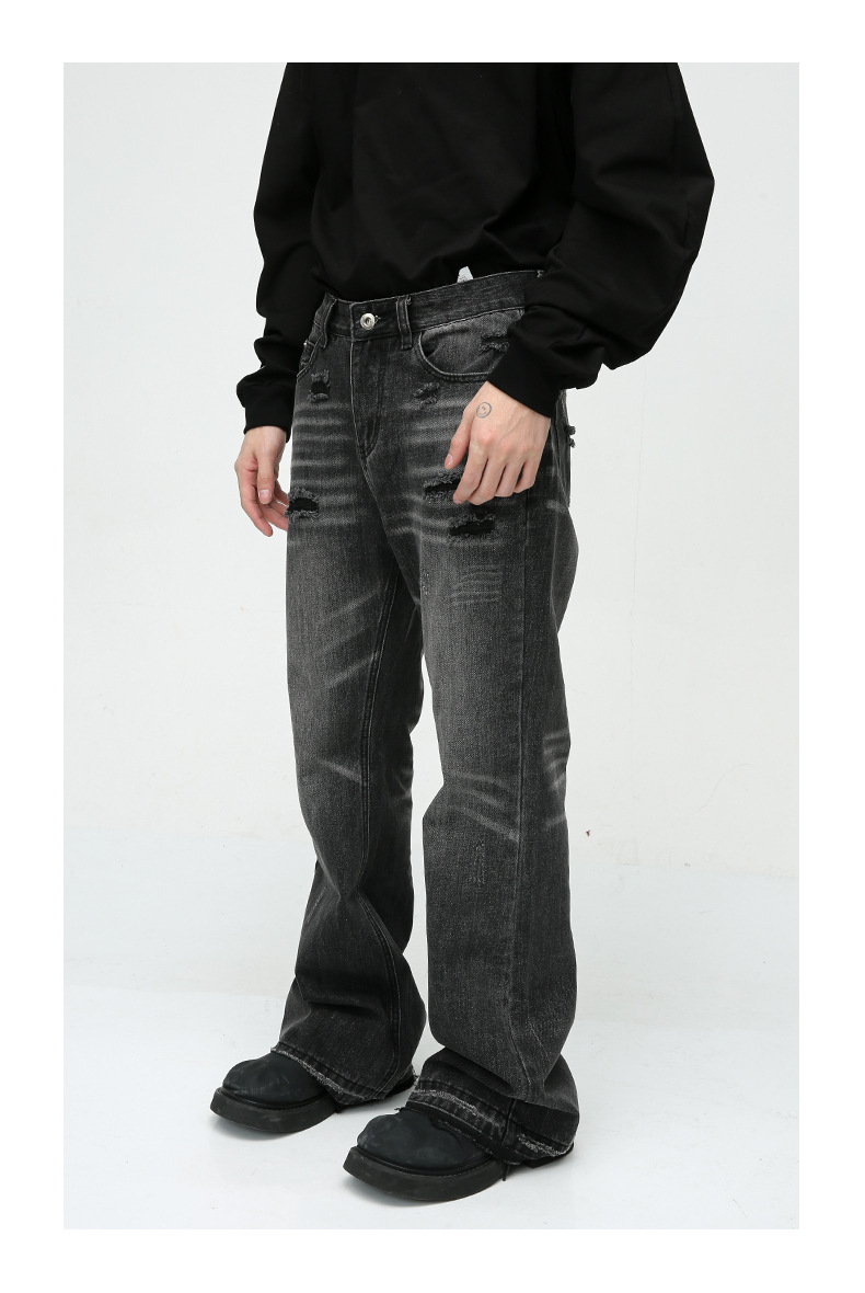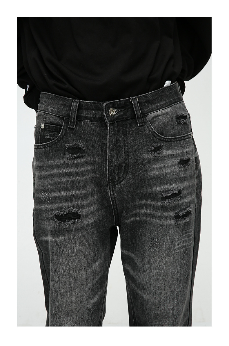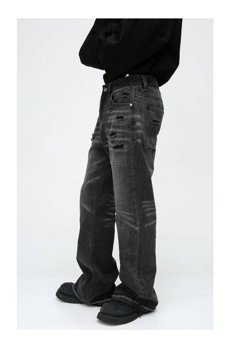 Ropa para hombre MTLCLOTHES | Vaqueros de diseño moderno con dobladillo sin rematar, estilo retro americano, lavados, desgastados y rotos
