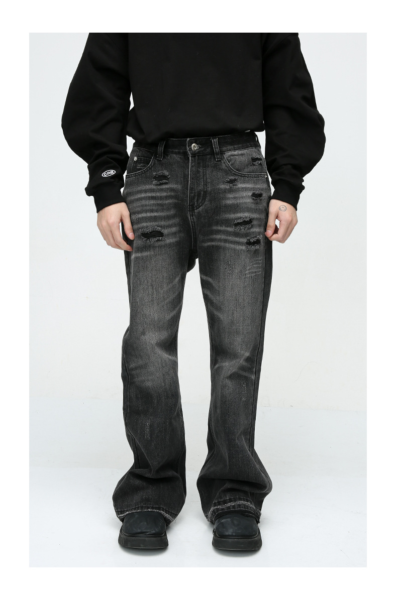 2024 primavera y otoño nuevo estilo jeans americanos hombres lavados y viejos pantalones de nicho High Street pantalones rectos sueltos tendencia