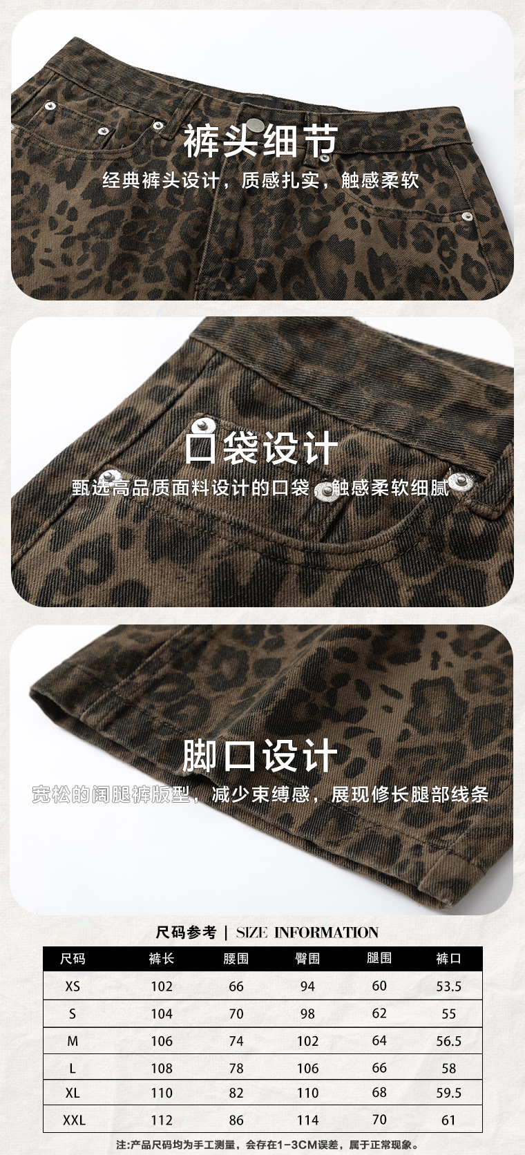 | Colores | Estampado de leopardo marrón |