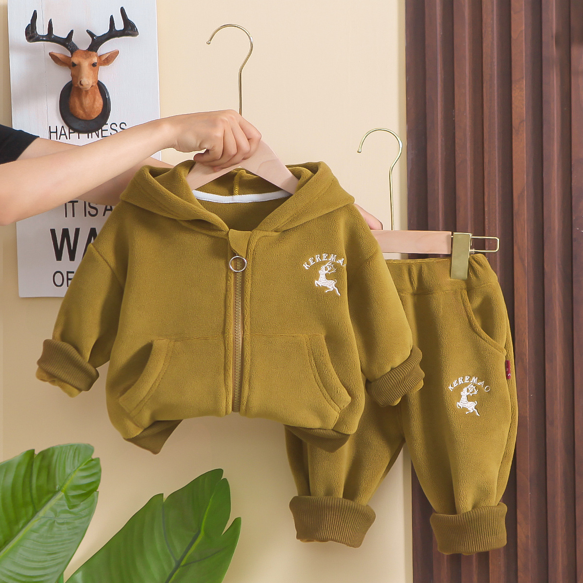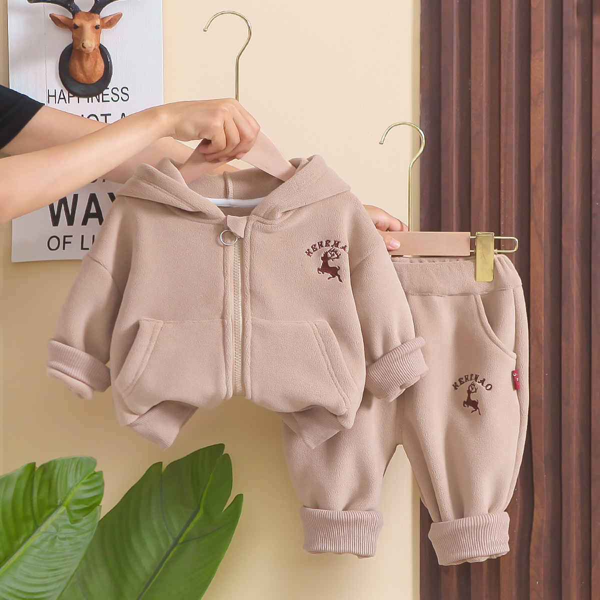 | Color | Conjunto de tres piezas de chaleco forrado de ciervo Verde,Xiaolu chaleco forrado de lana de tres piezas beige,Conjunto de dos piezas de jersey con forro polar de ciervo Verde,Jersey con forro polar de ciervo de dos piezas beige |