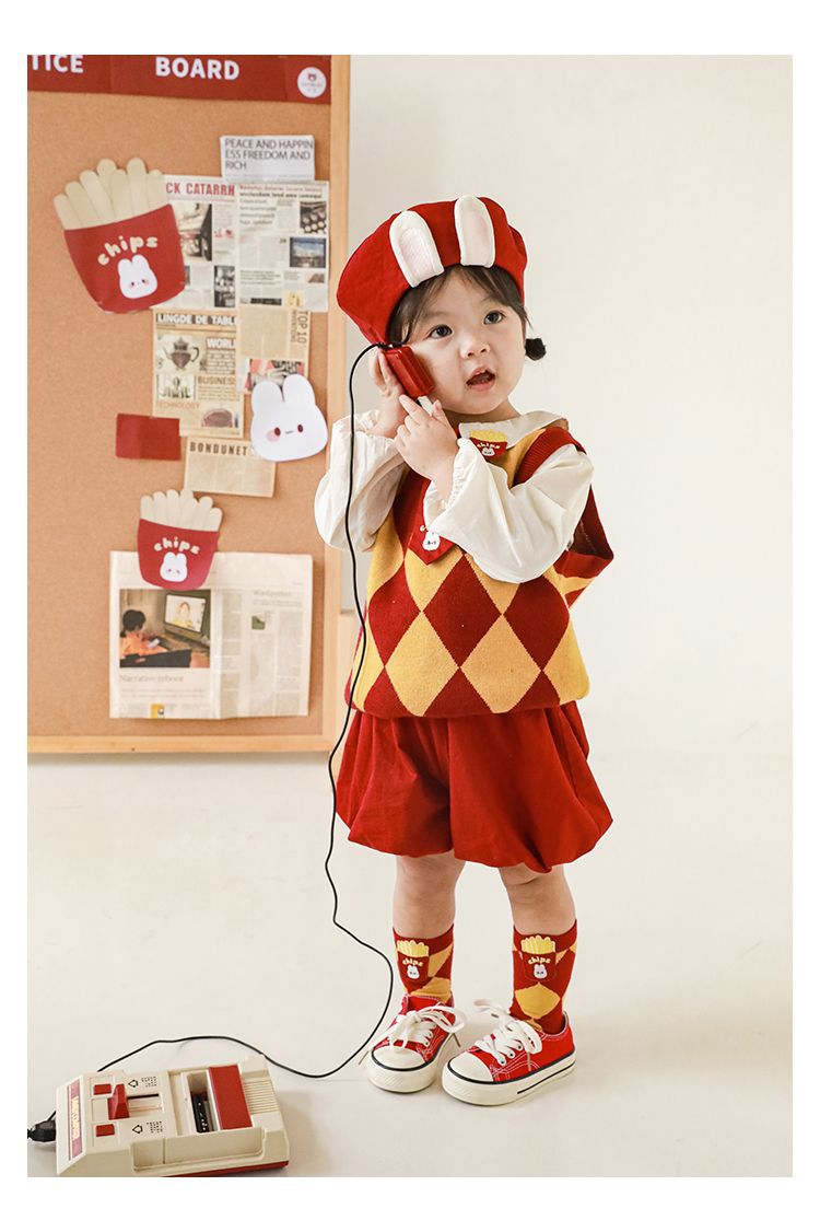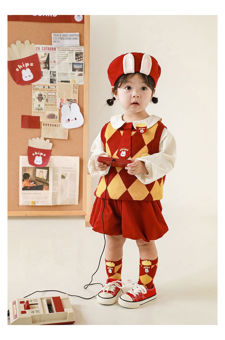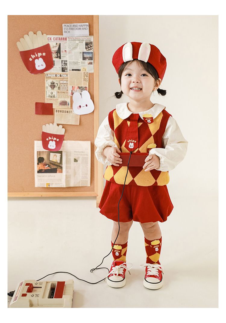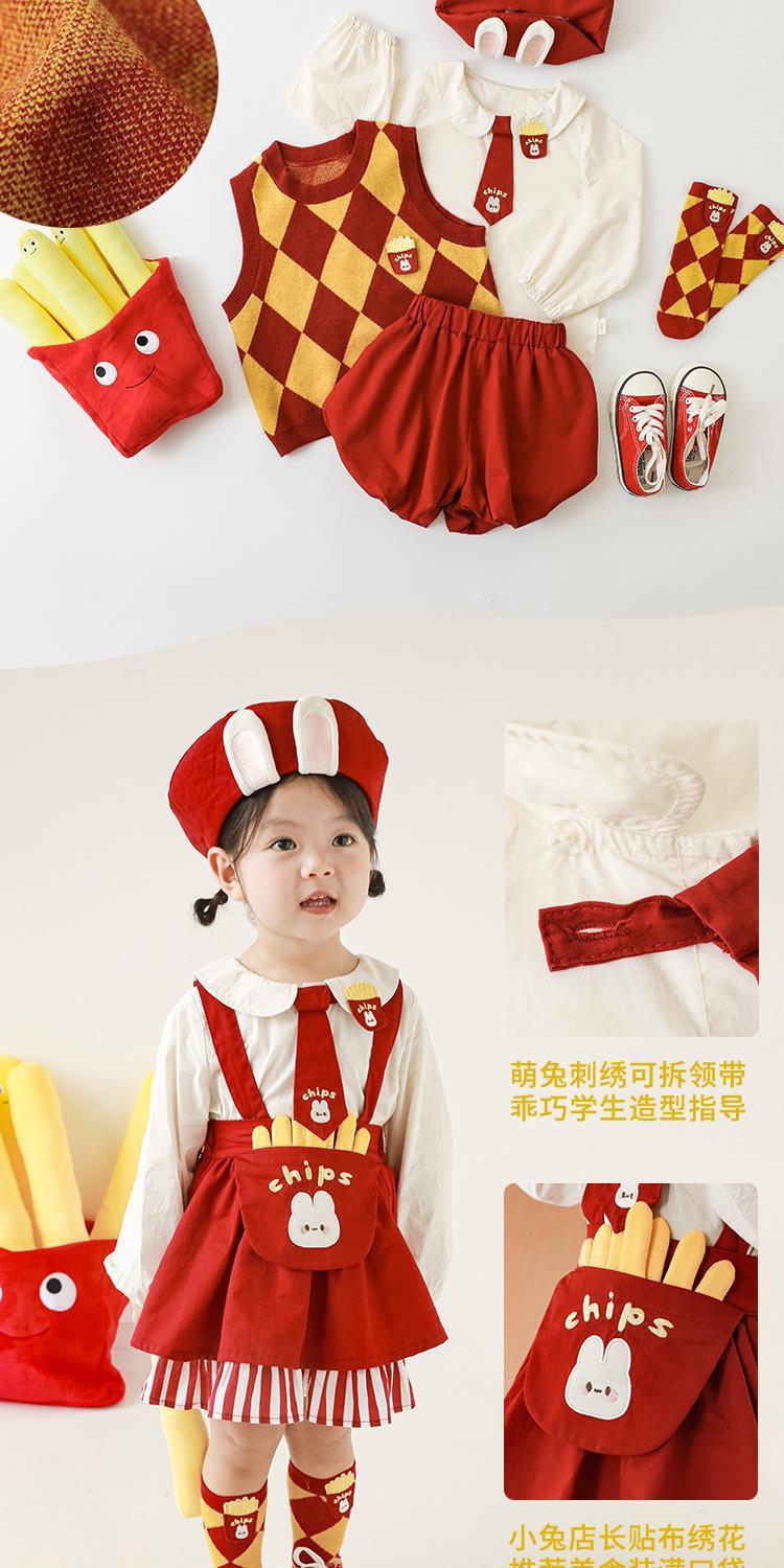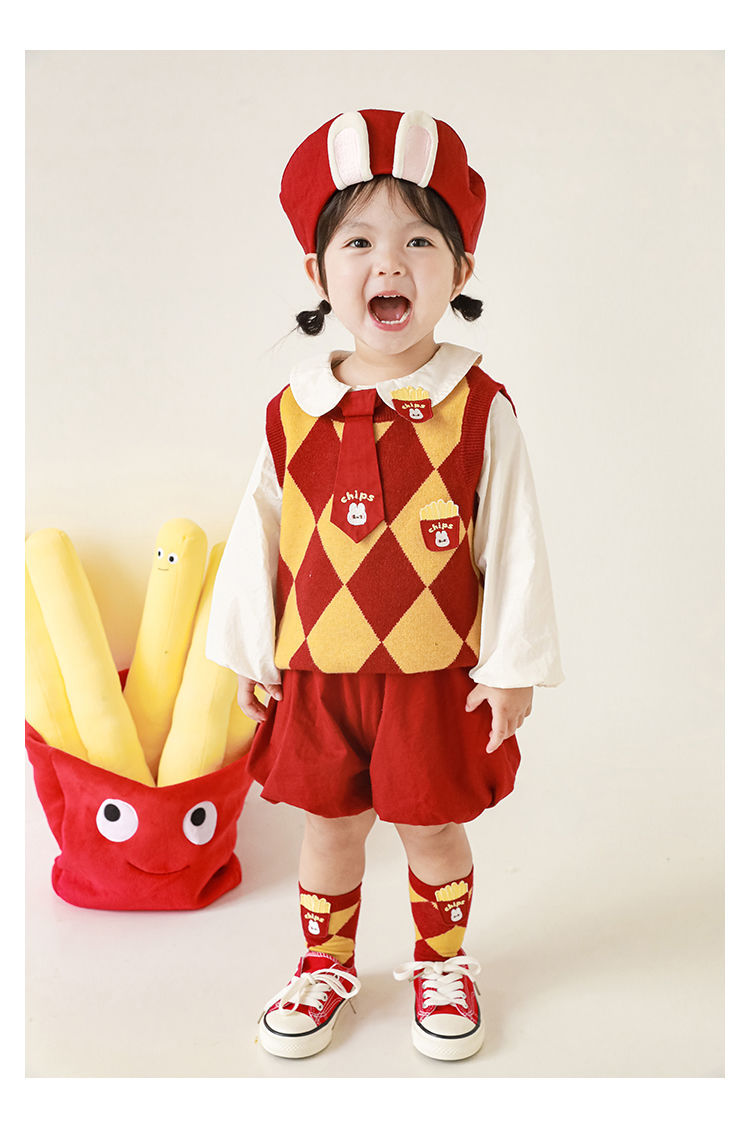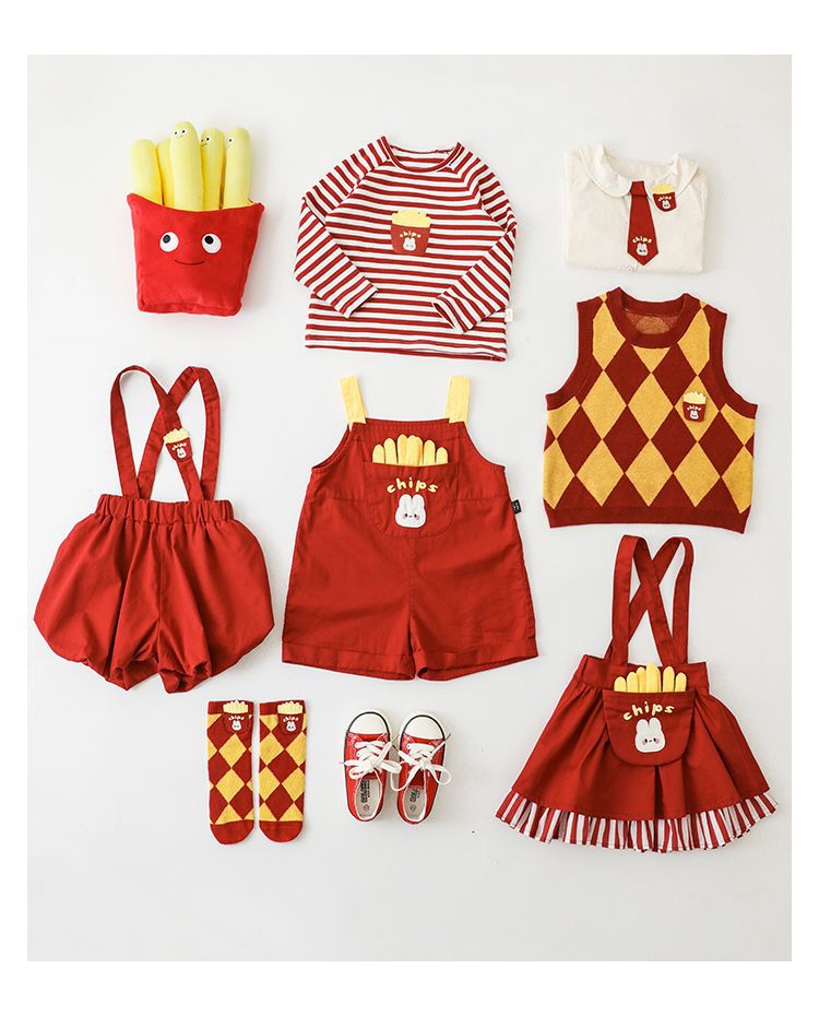 | Colores | Chaleco rojo y amarillo (C2592),Mono rojo (C2594),Mono rojo (C2695),Falda con tirantes rojo (C2696) |