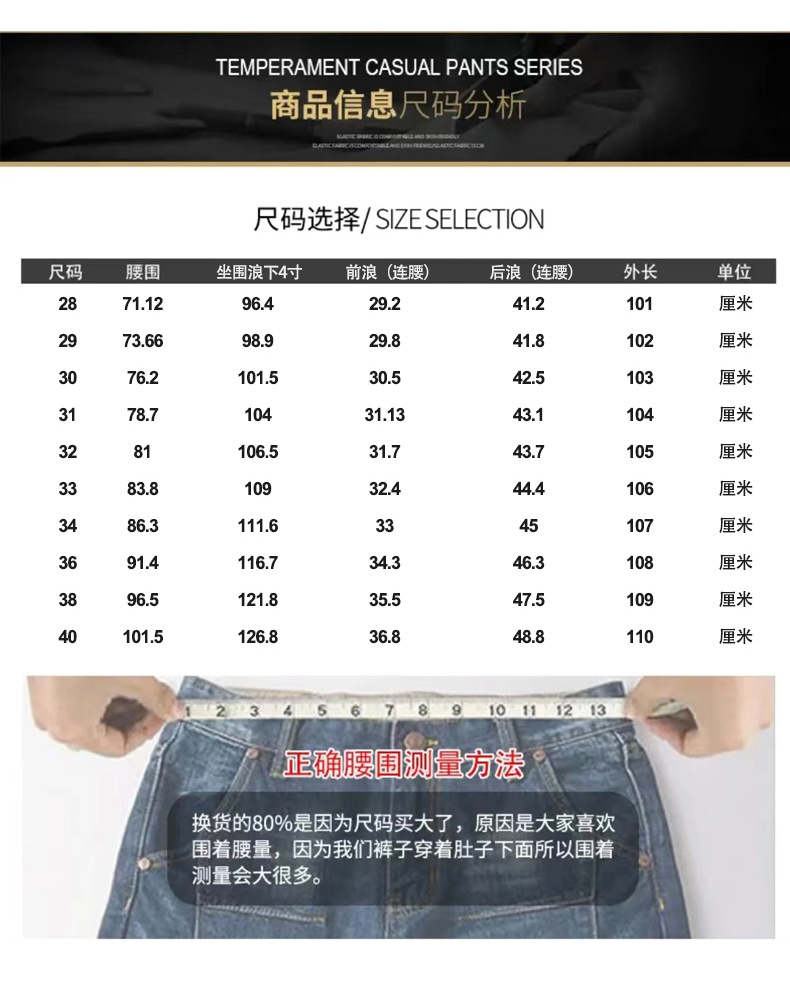| Pantalones tipo | Tipo recto |