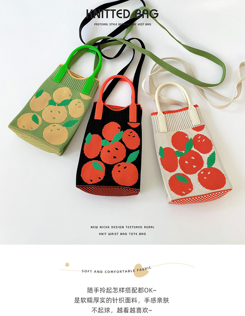 Bolso de las mujeres nicho diseño de naranja fresco mini bolso del teléfono todo partido de punto hombro bolsa de mensajero monedero