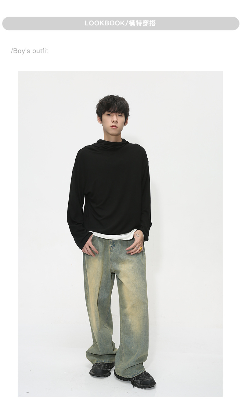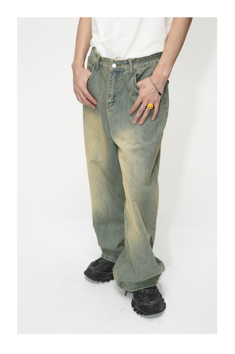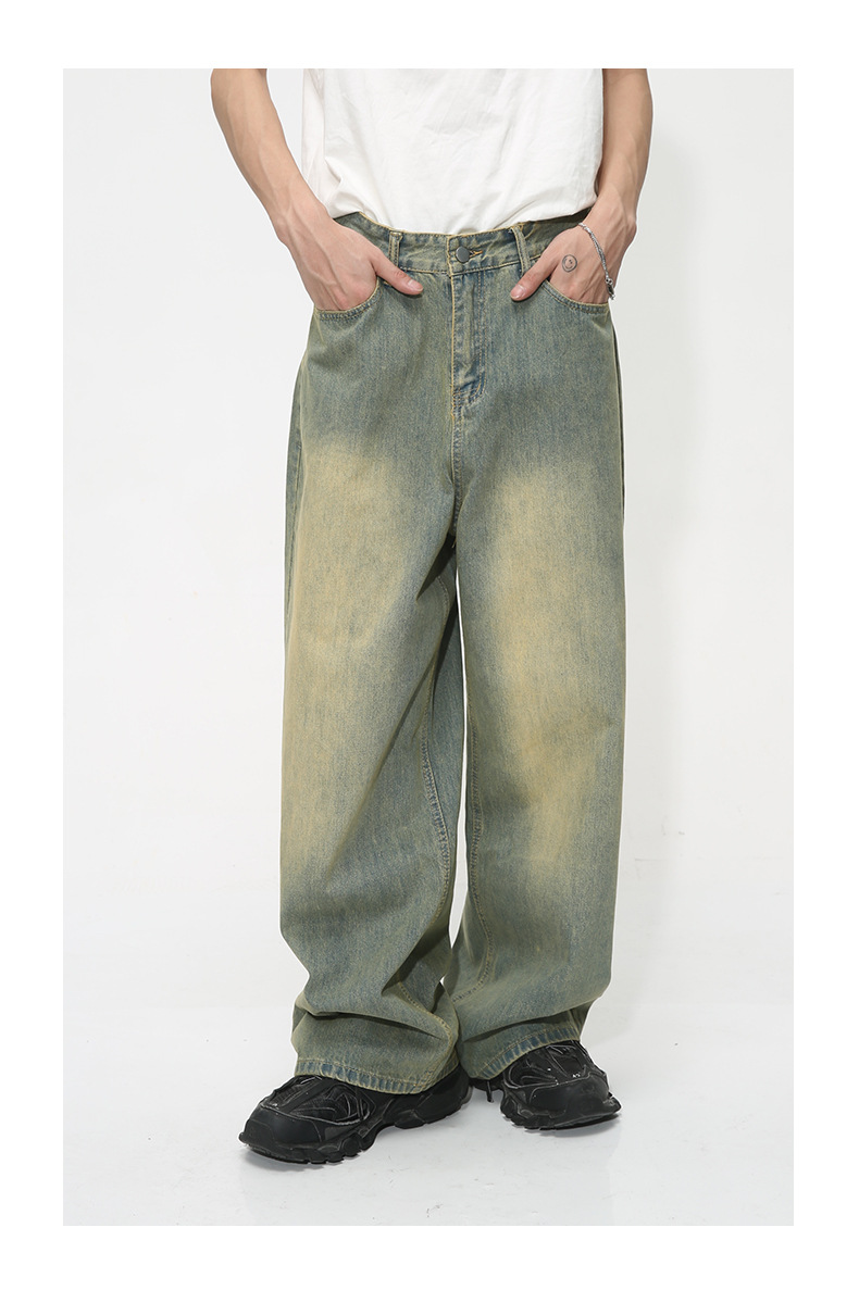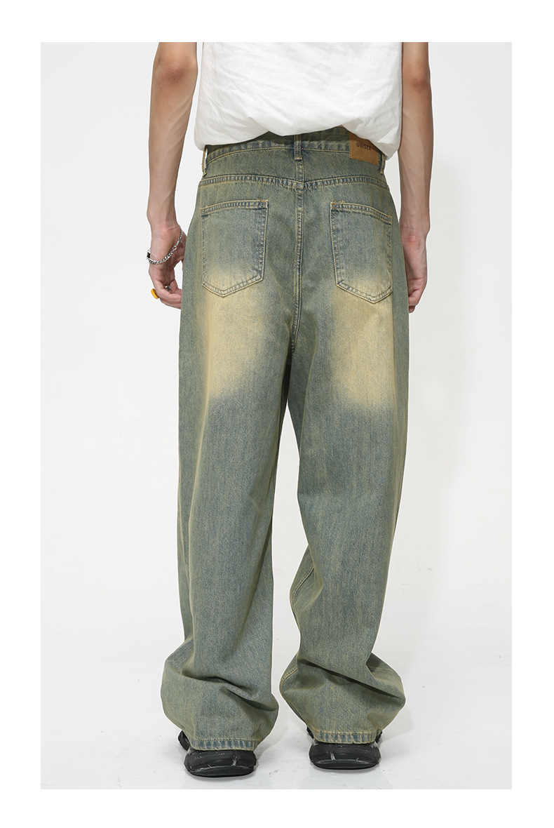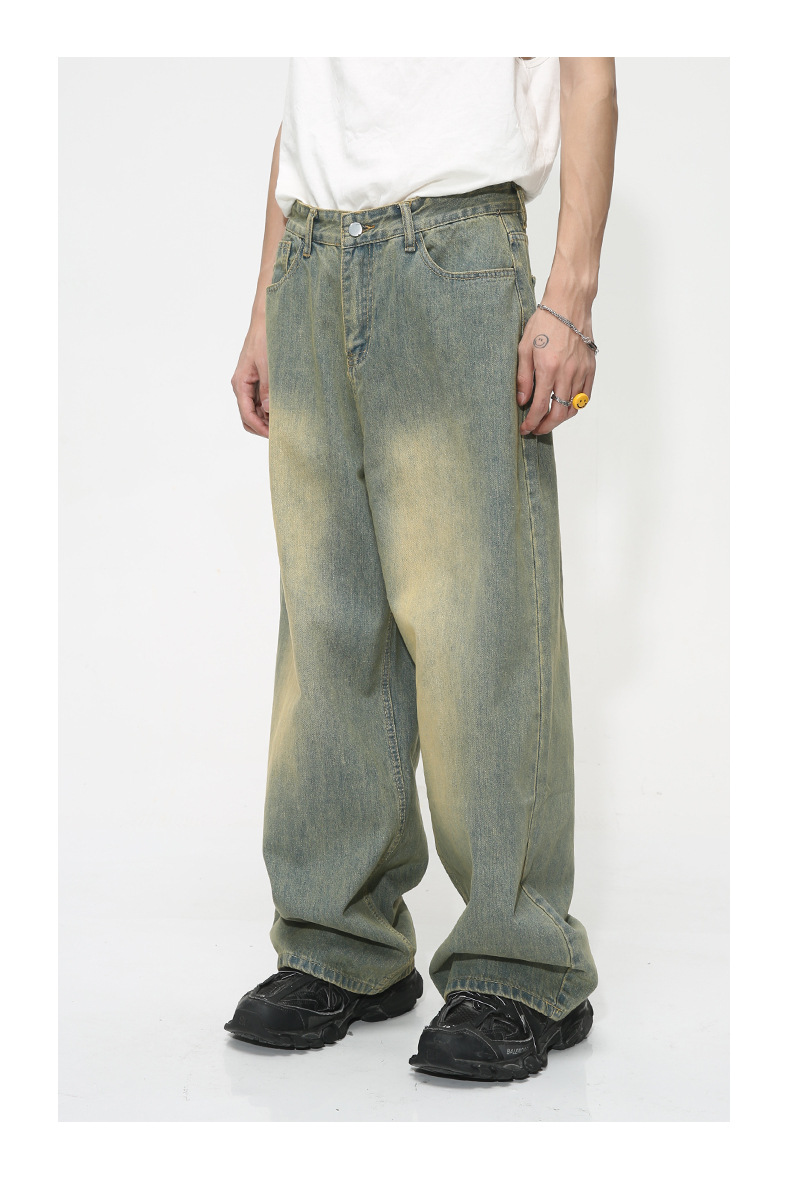MTLCLOTHES Hombres| Otoño nuevo estilo americano retro retro piernas anchas colgando sueltos jeans lavados con agua