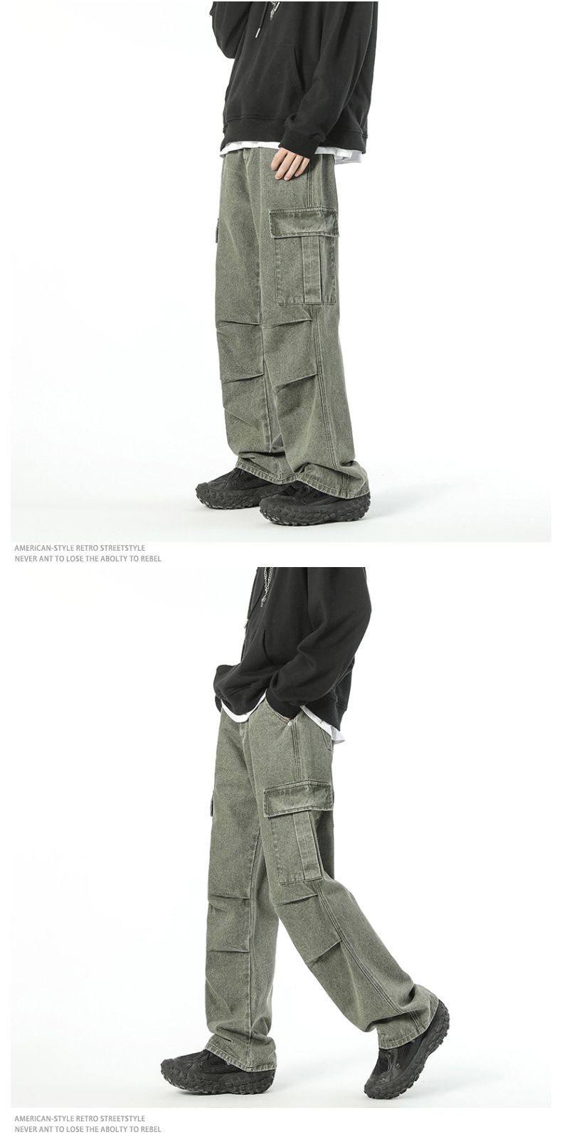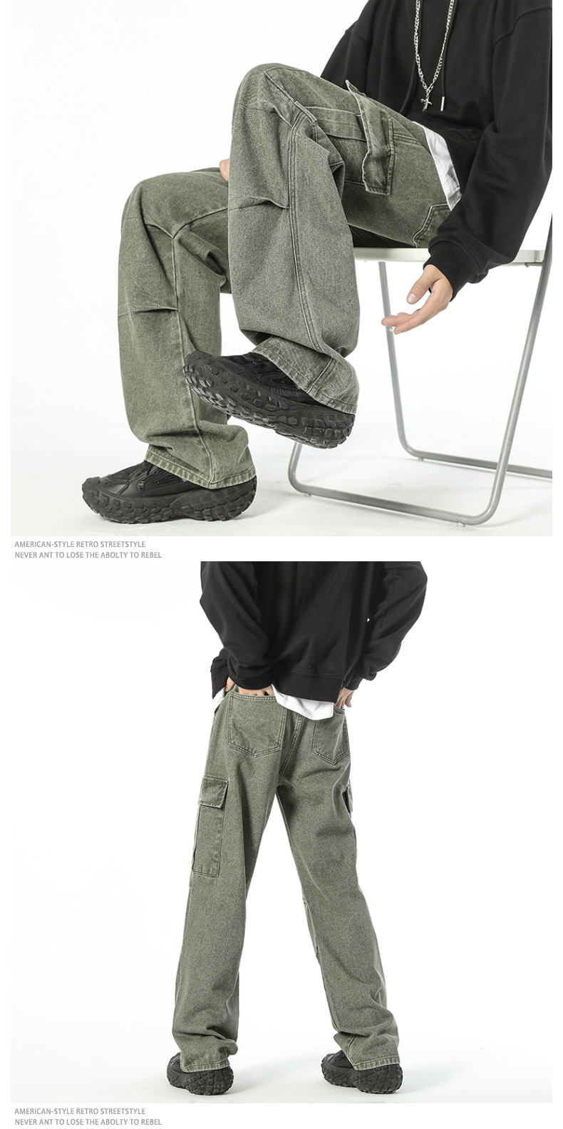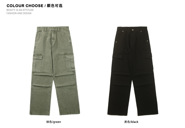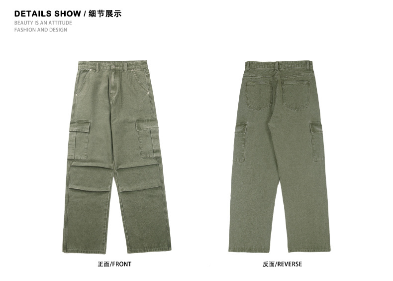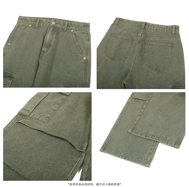 Retro americano bordes de cimetaje contorno jeans estilo de diseño de alta calle estereoscópico bolsillo grande pantalones casuales sueltos