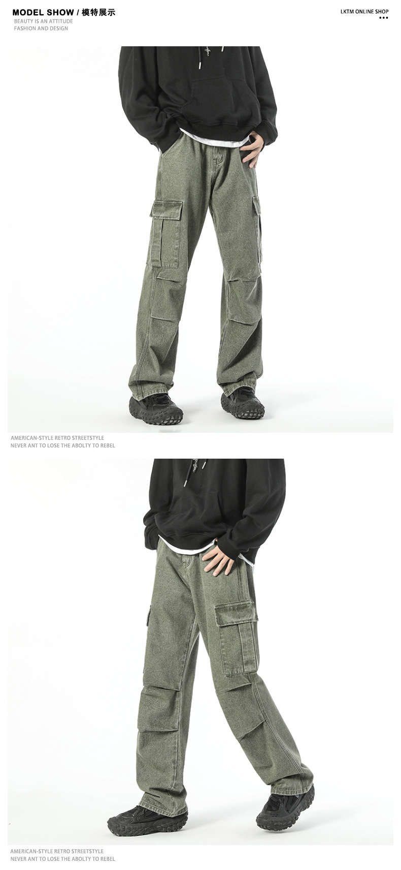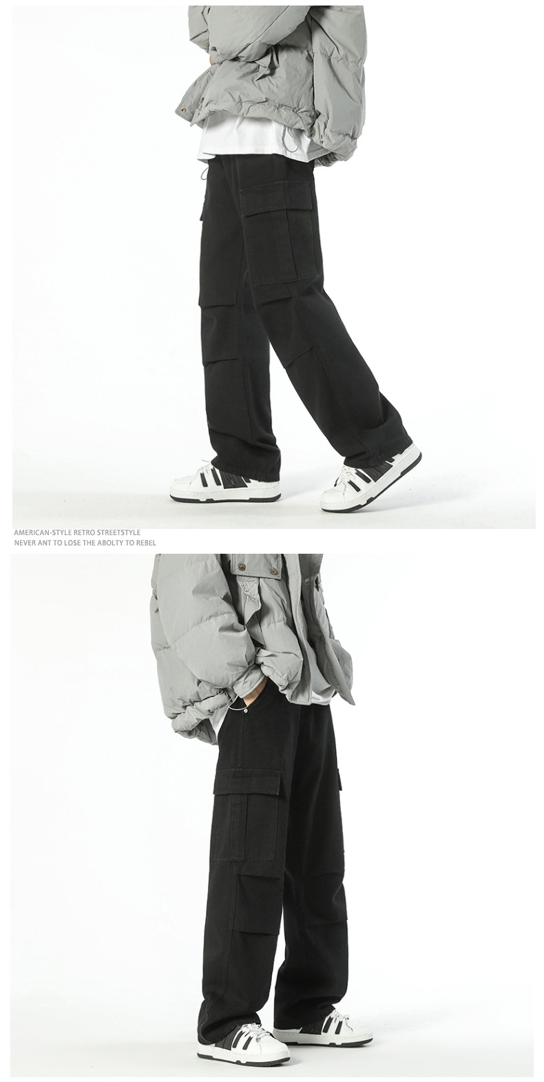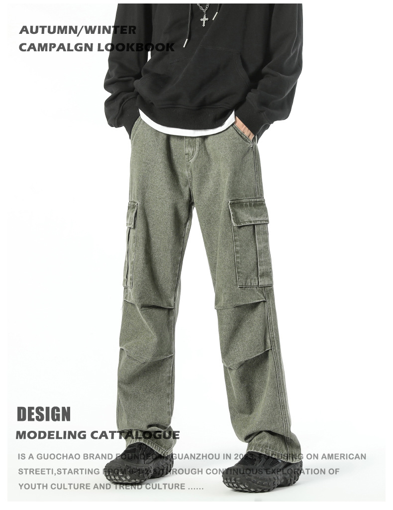 Ropa de hombre LKTM # Vaqueros japoneses sueltos de pierna ancha con múltiples bolsillos para hombre con mono plisado recto de marca de moda