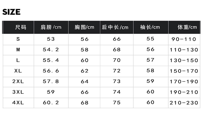 | Tamaño | S recomendado (90-110) kg,M recomendado (110-130) kg,L recomendado (130-150) kg,XL recomendado (150-170) kg,2XL recomendado (170-190) kg,3XL recomendado (190-210) kg,4XL recomendado (210-230) kg |