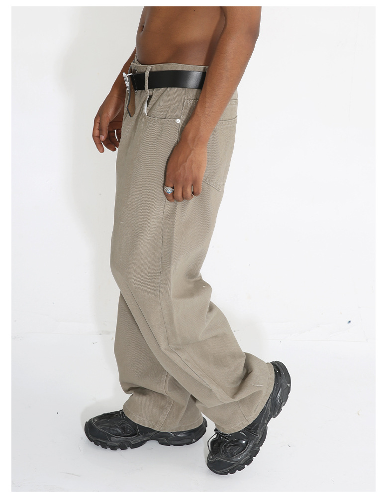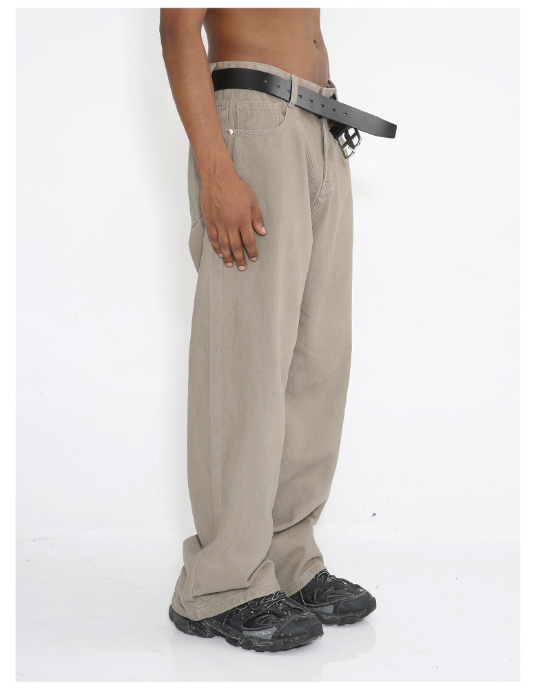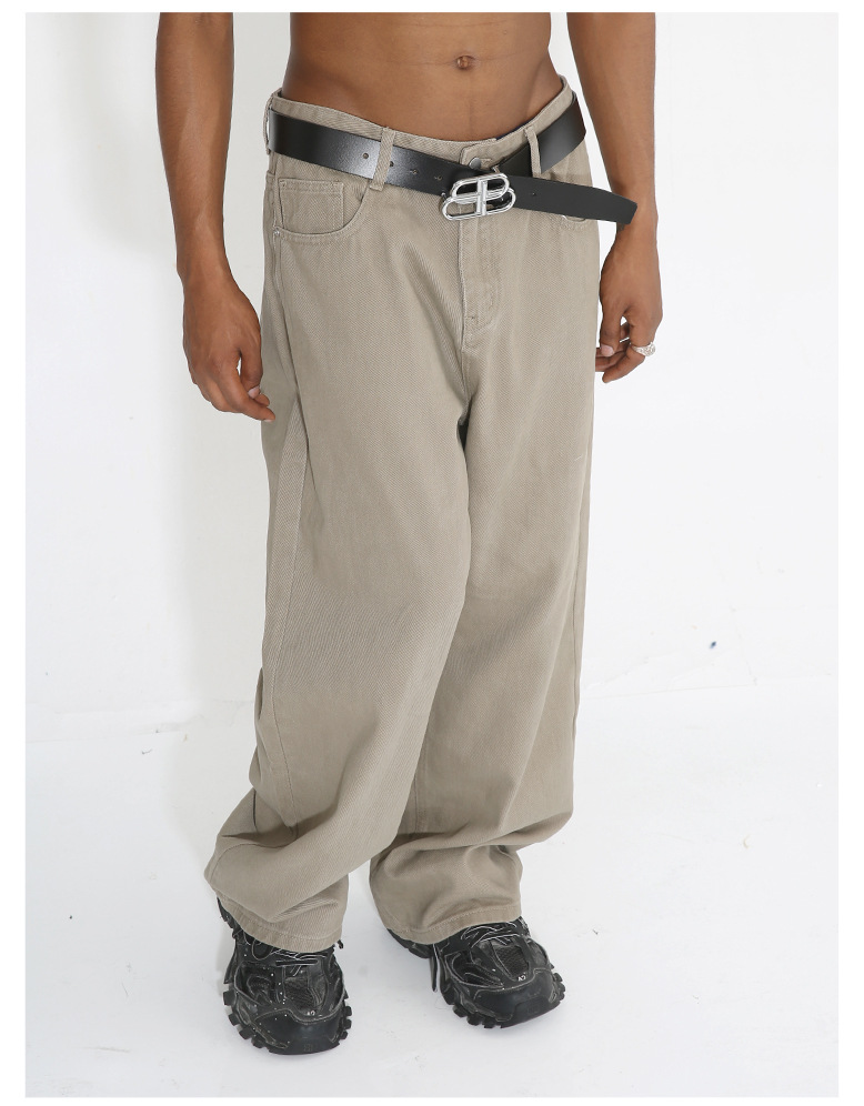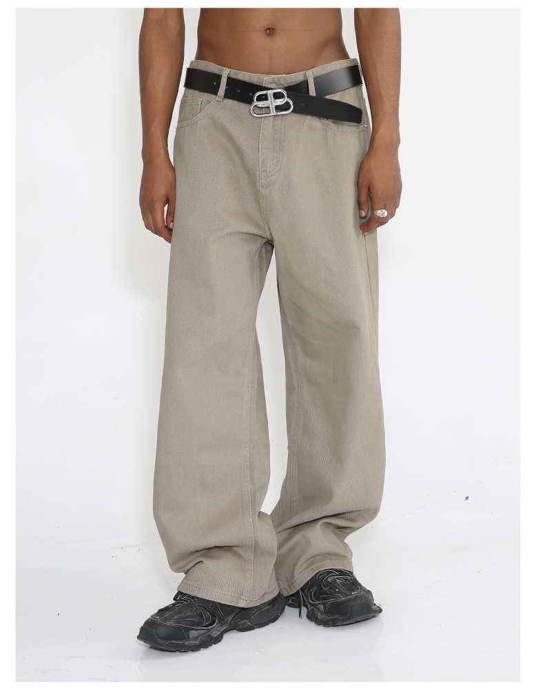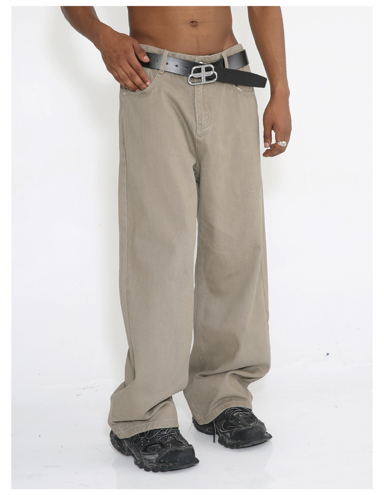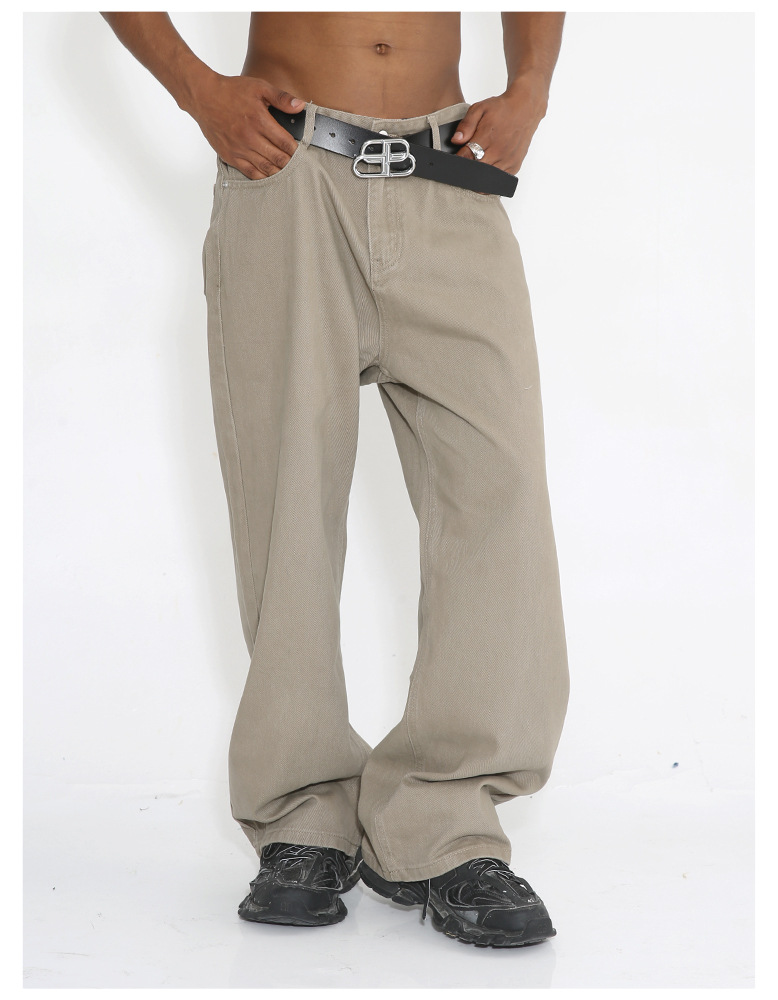 Pantalones vaqueros sueltos lavados para hombres viejos pantalones casuales de pierna ancha suaves para la piel Pantalones rectos de la marca de moda para hombres High Street
