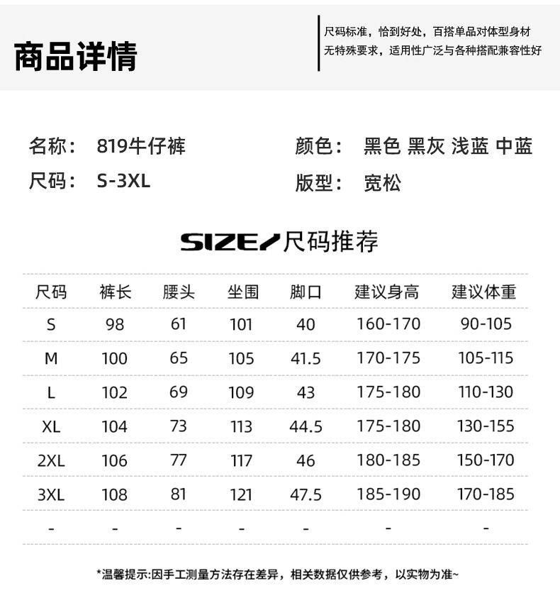 | Colores | 819 modelos de primavera y otoño negro y gris,819 primavera y otoño azul medio,819 primavera y otoño azul claro,819 Negro |