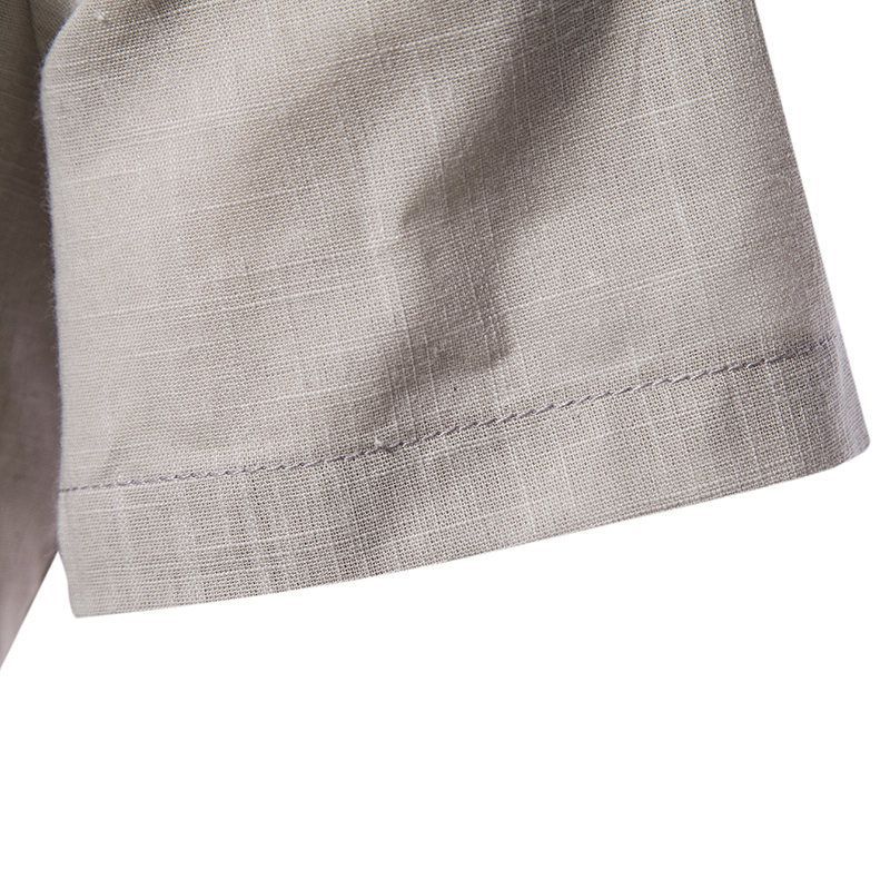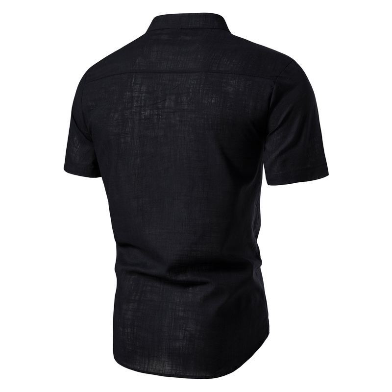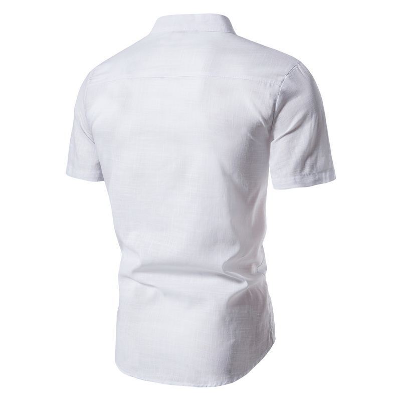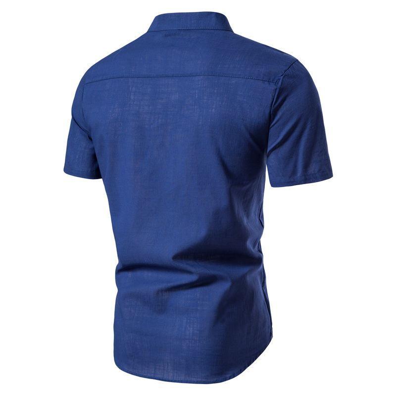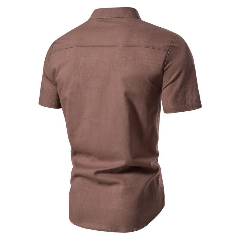 2023 caliente verano lino fino color sólido soporte collar hombres camisa casual manga corta comercio exterior camisa hombres M302