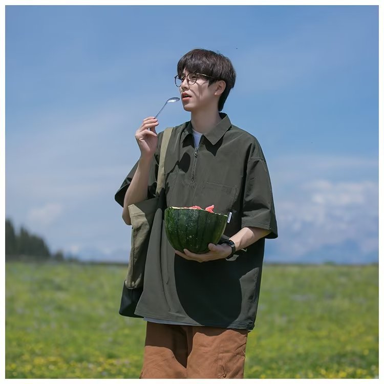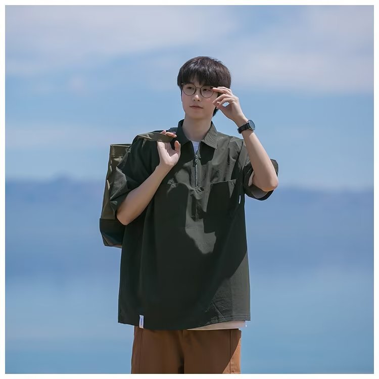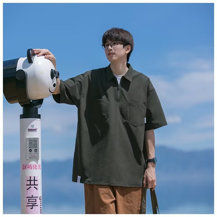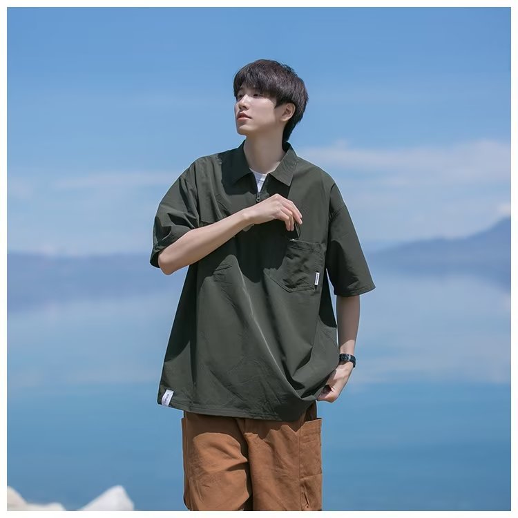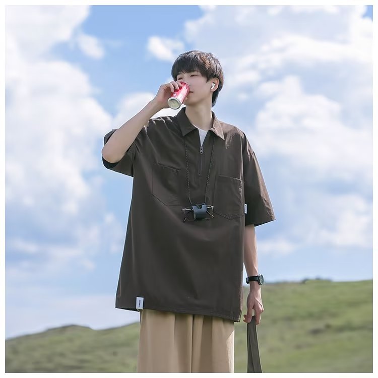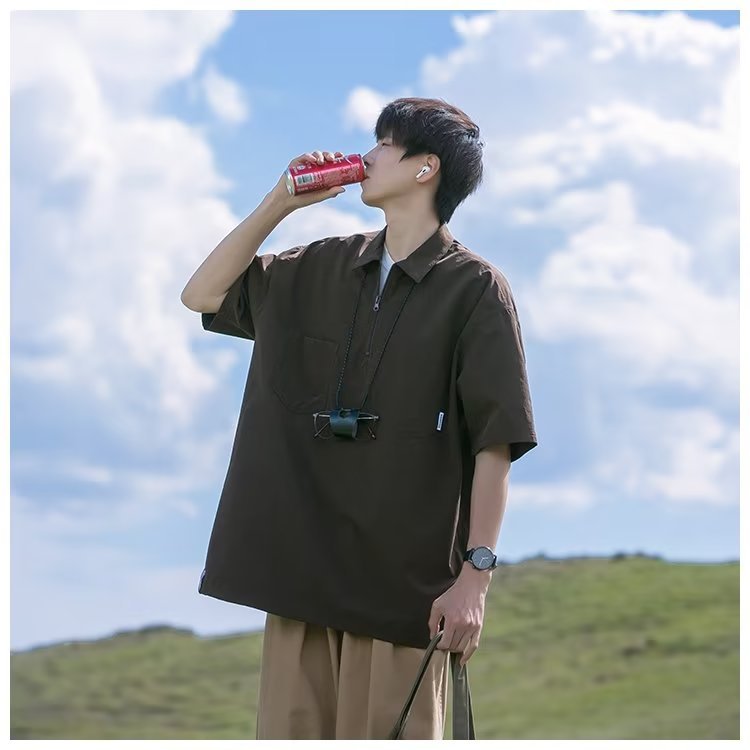 Camisa de Polo de manga corta de color sólido verano de los hombres ins marca de moda estilo de Hong Kong camiseta Suelta todo-fósforo de moda contraste color media manga superior hombres