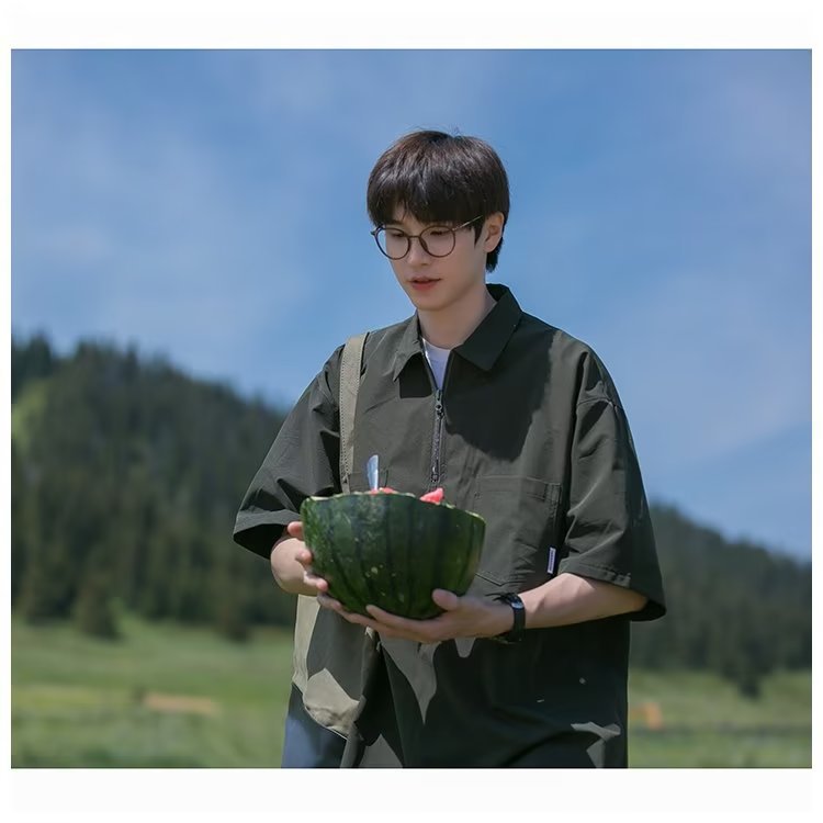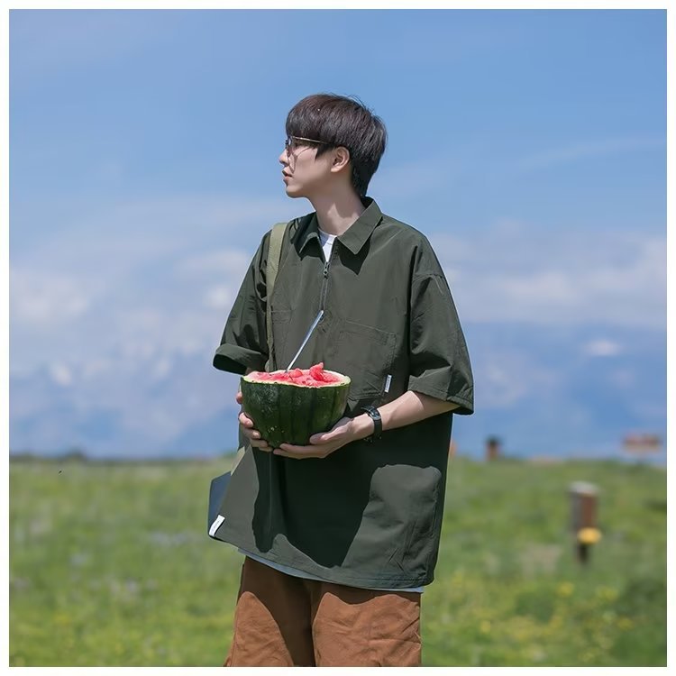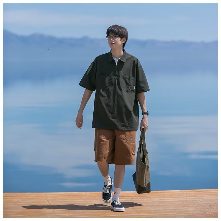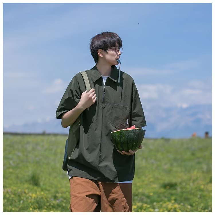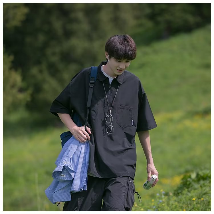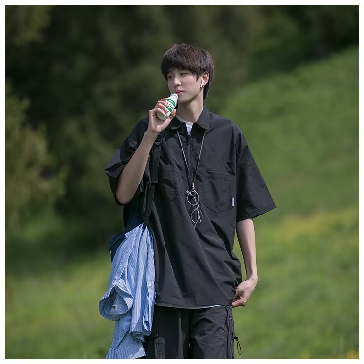 Camisa de Polo de manga corta de color sólido verano de los hombres ins marca de moda estilo de Hong Kong camiseta Suelta todo-fósforo de moda contraste color media manga superior hombres