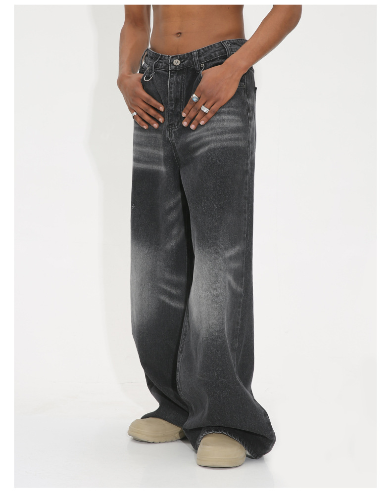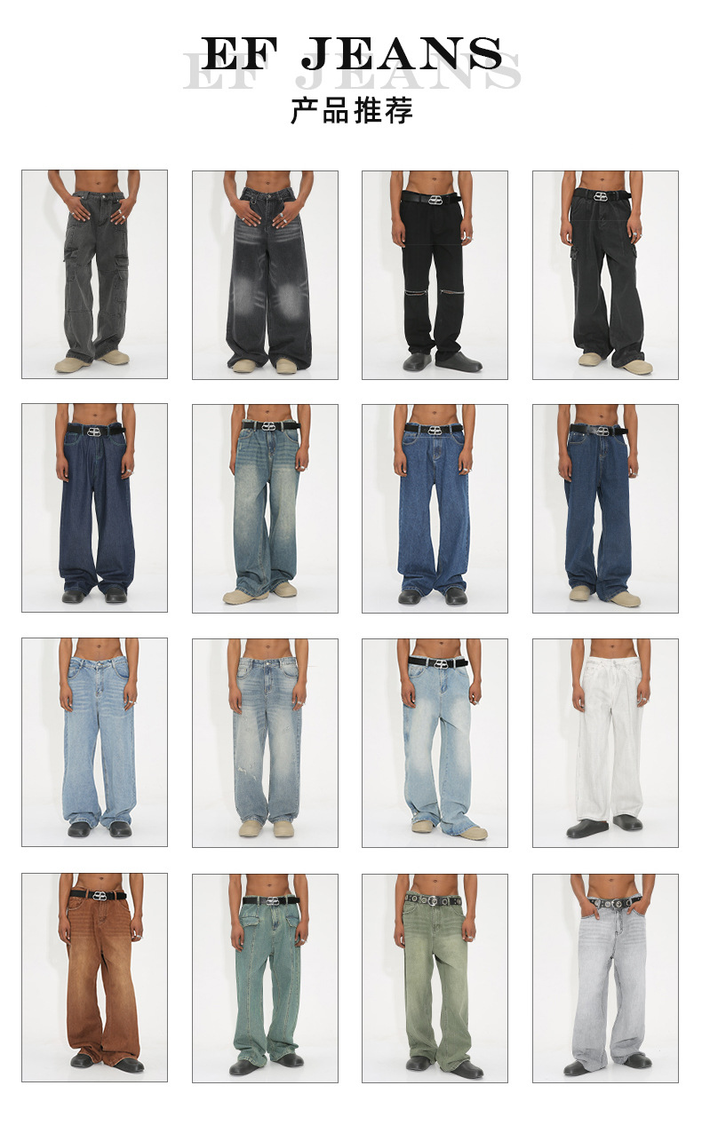 EF Denim | 2023 nuevos pantalones lavados retro rectos de pierna ancha pantalones de mezclilla sueltos hombres a juego