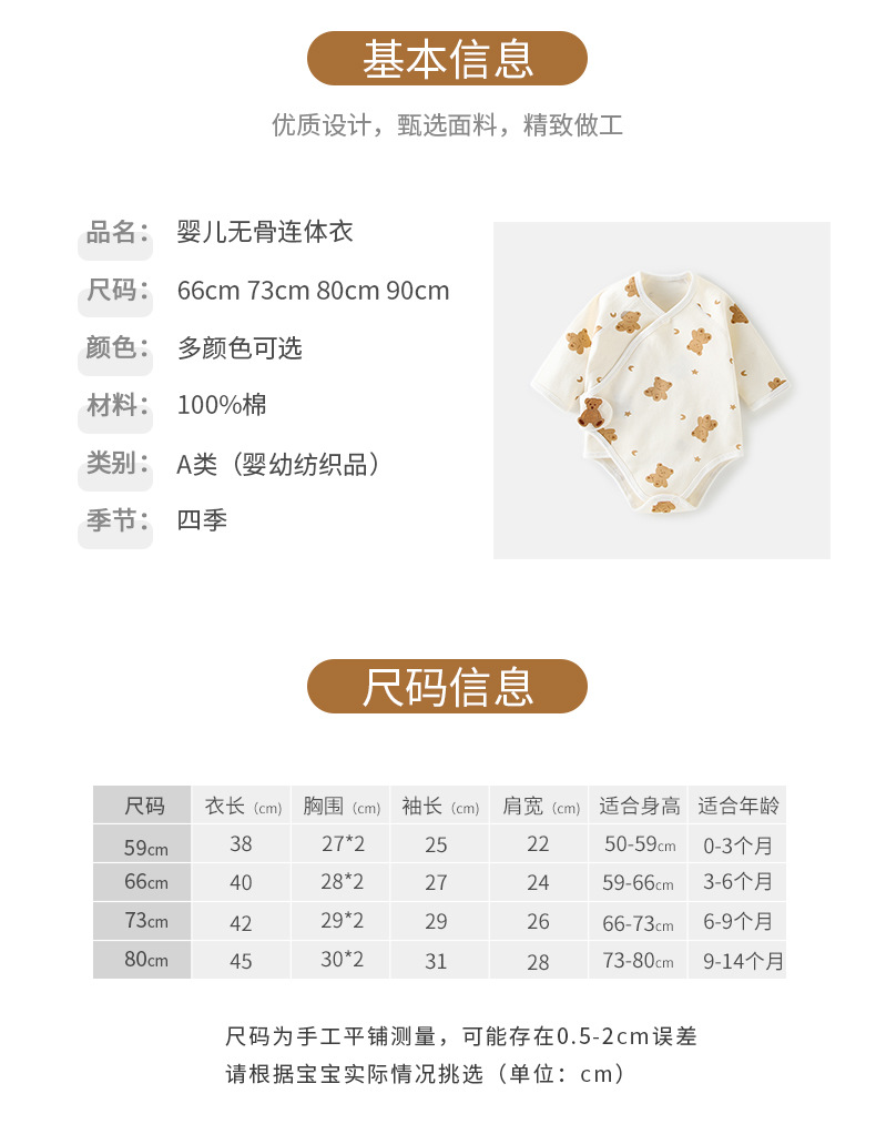 | Colores | Oso marrón [ropa de pedo],Flores rosas [ropa de pedo],Calabaza naranja [ropa de pedo],Dinosaurio verde [ropa de pedo],Cereza morada [ropa de pedo],Cookie amarillo [ropa de pedo],Cordero gris [ropa de pedo],Zorro color café [ropa de pedo] |