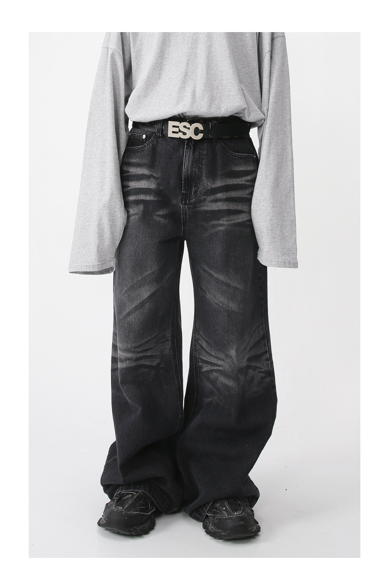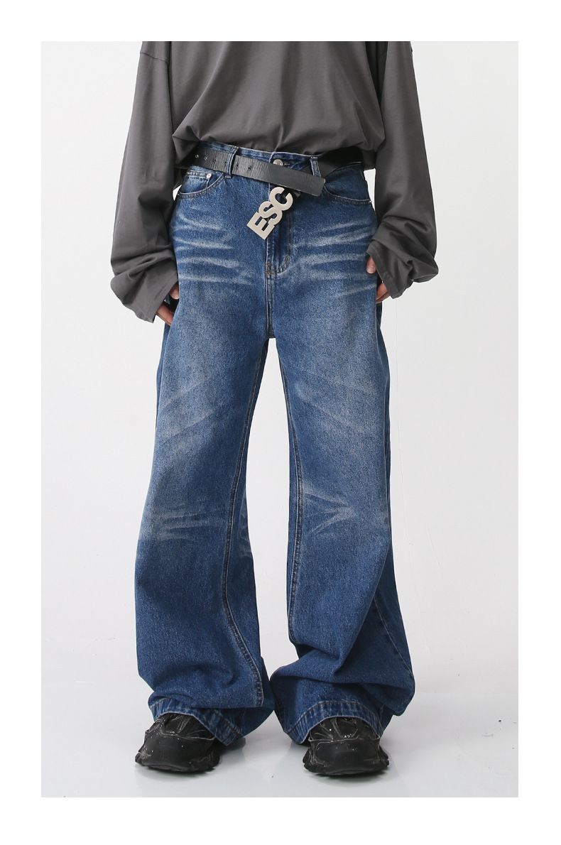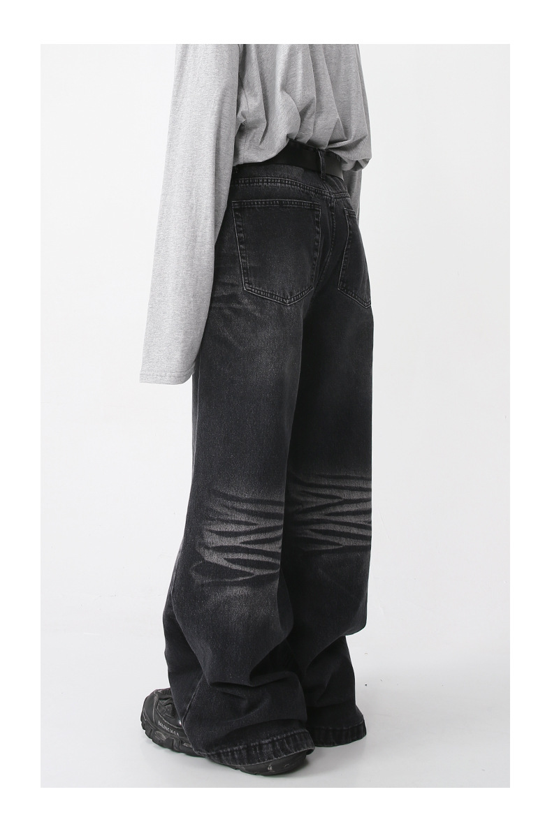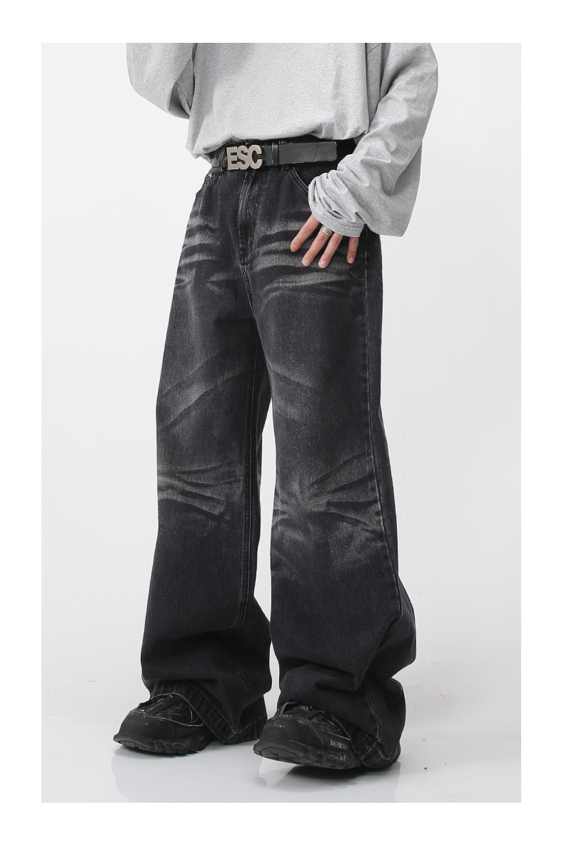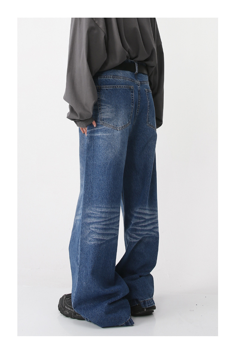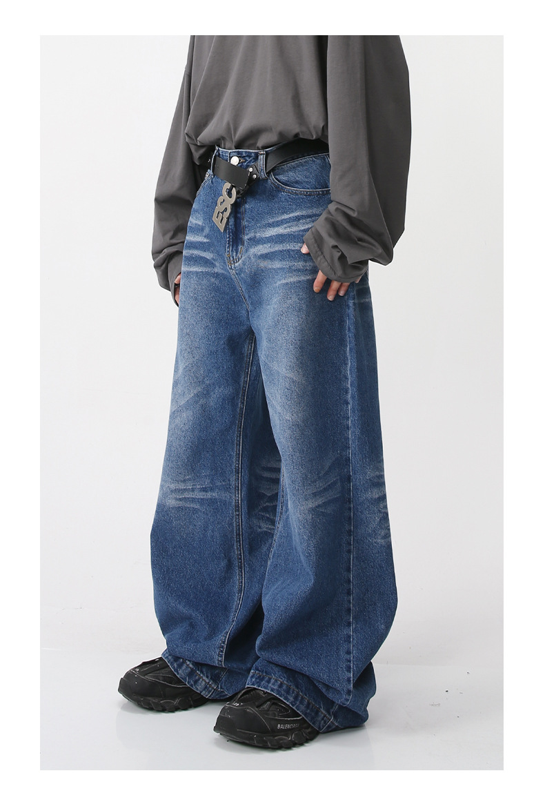 Nirben Denim | American retro jeans hombres sueltos marca de moda Pantalones de gran tamaño drapeado ancho pantalones trapeador