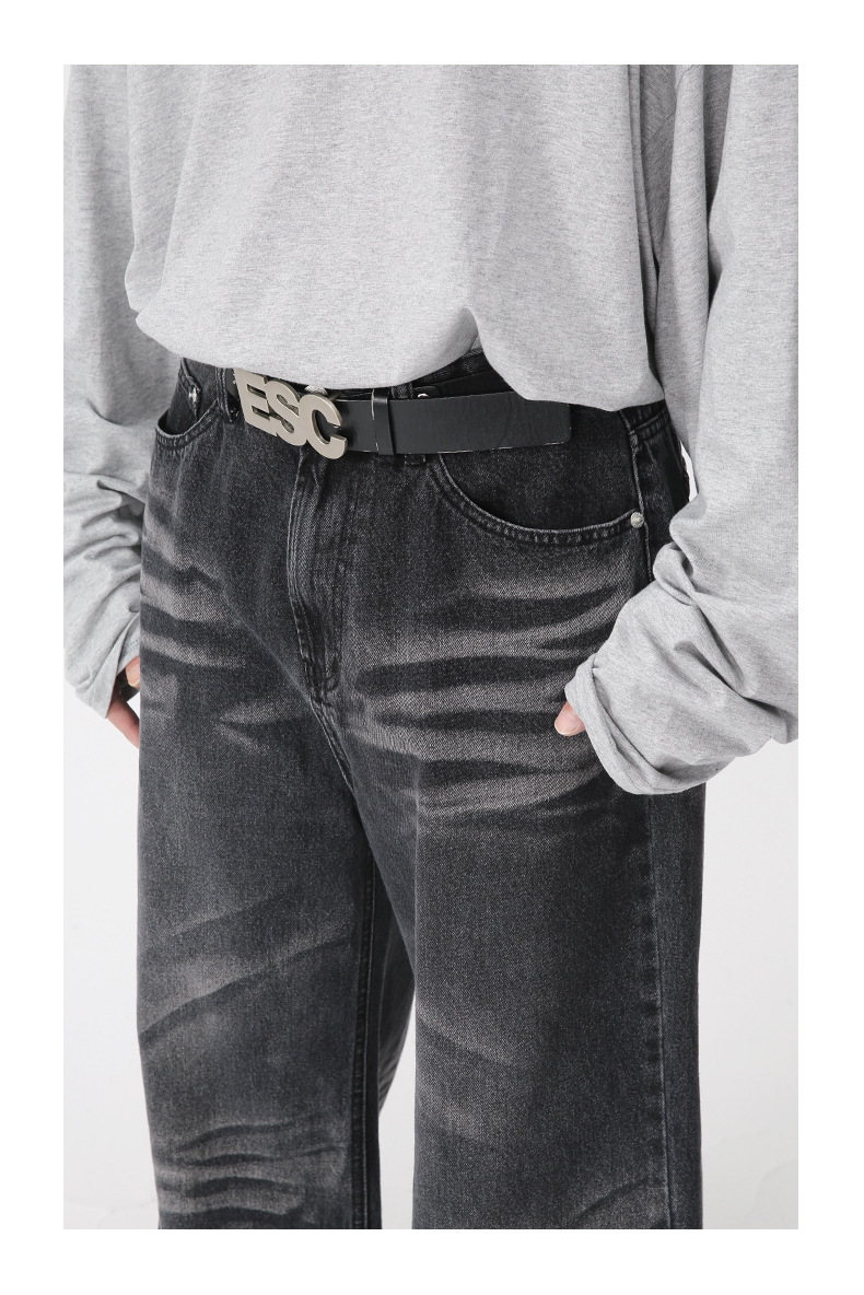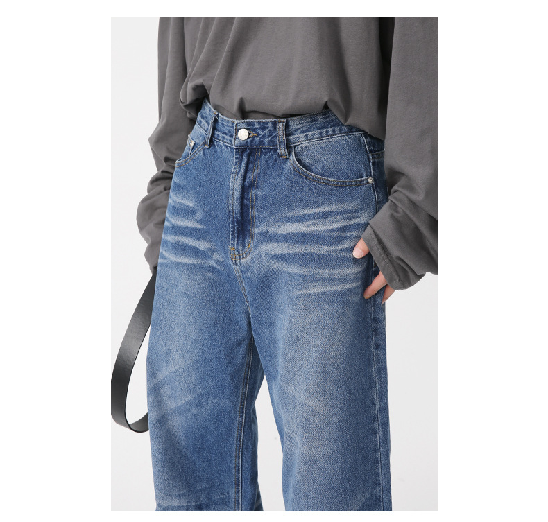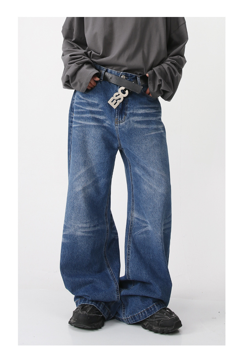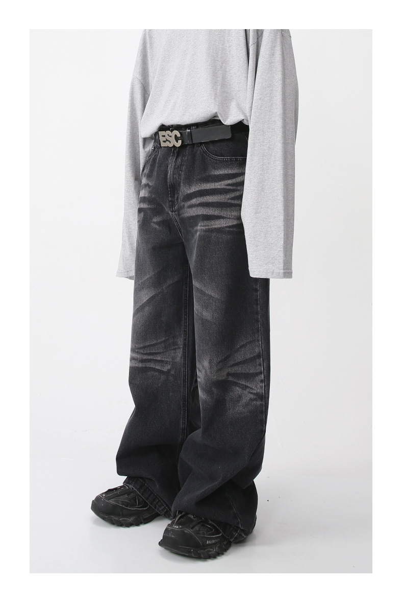 Jeans anchos de mezclilla para hombre, estilo vintage americano lavado, corte recto y suelto