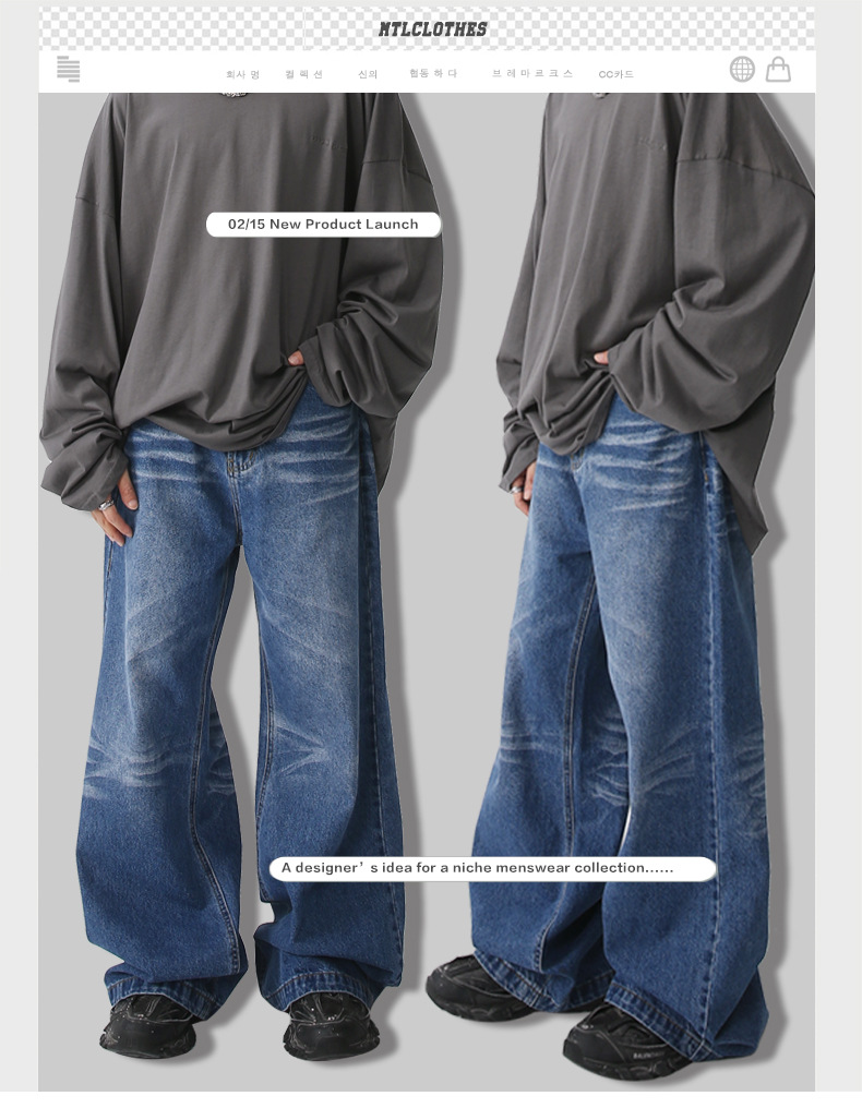 Mtlclothes ropa de los hombres | 2023 primavera nueva casual Denim pantalones sueltos pierna ancha estilo coreano moda Retro
