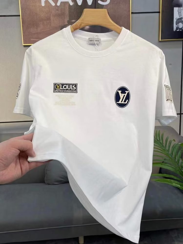 Cuello redondo de impresión de la letra media manga de los hombres de verano de moda marca de moda juvenil camiseta estándar