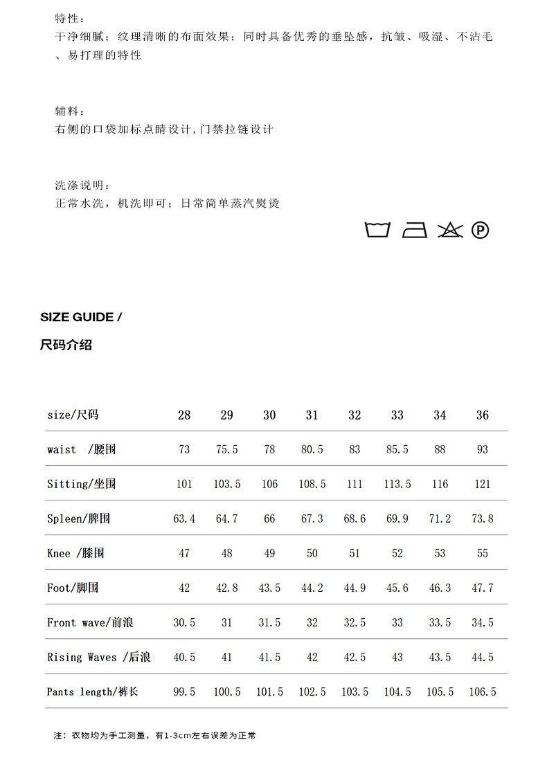 | Tipo de pantalón | Tipo suelto |