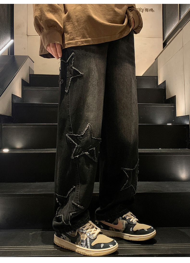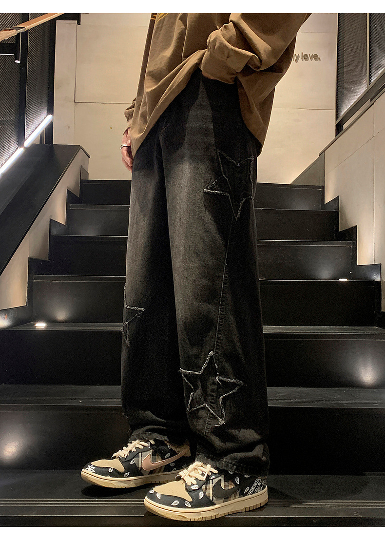 Pantalones vaqueros bordados de invierno de los hombres ins High Street suelta de cinco puntas estrella papá pantalones otoño e invierno marca de moda Pantalones rectos de pierna ancha