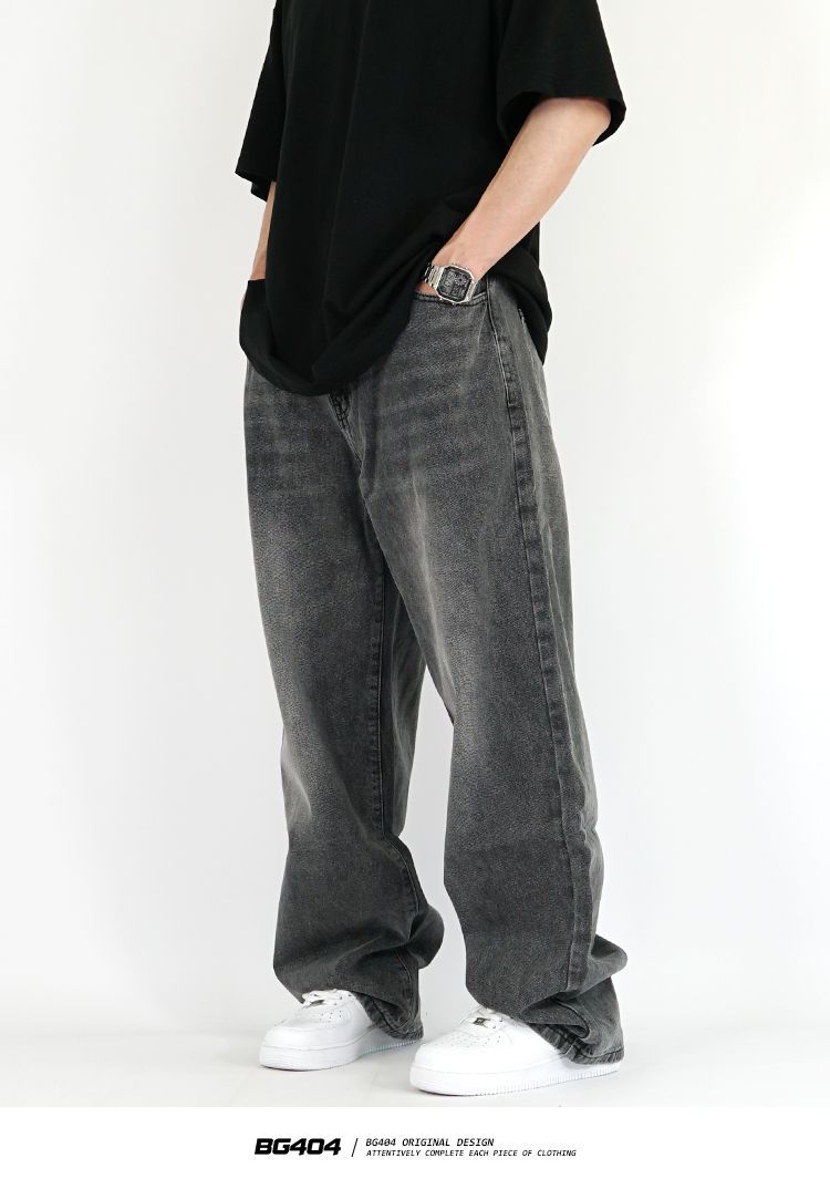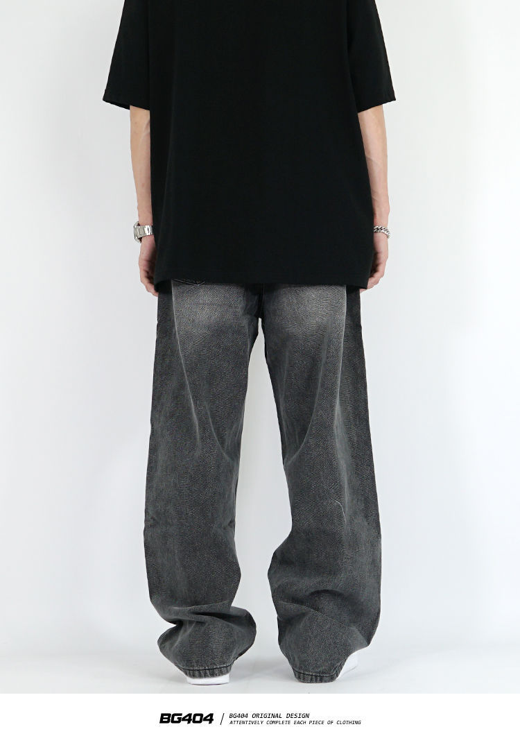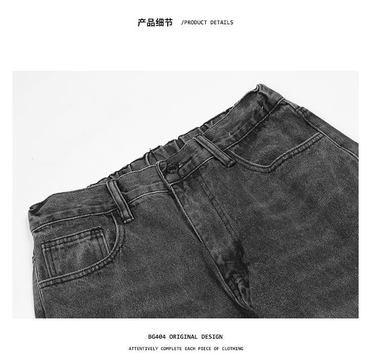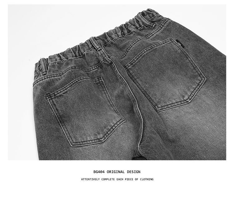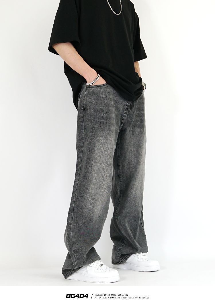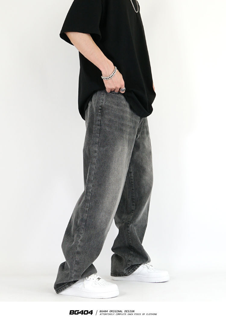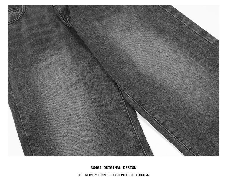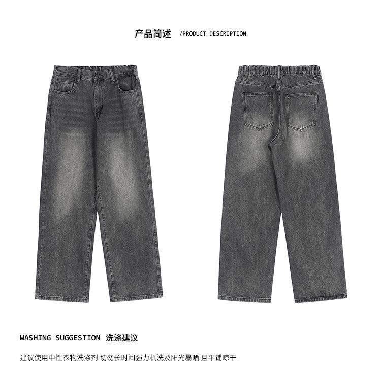 Pantalones vaqueros de cintura elástica gris ahumado retro de estilo europeo y americano para hombres y mujeres pantalones de drapeado de pierna ancha rectos sueltos
