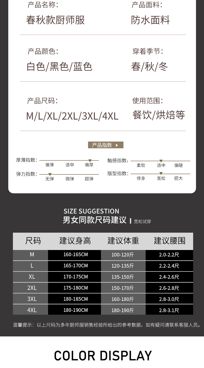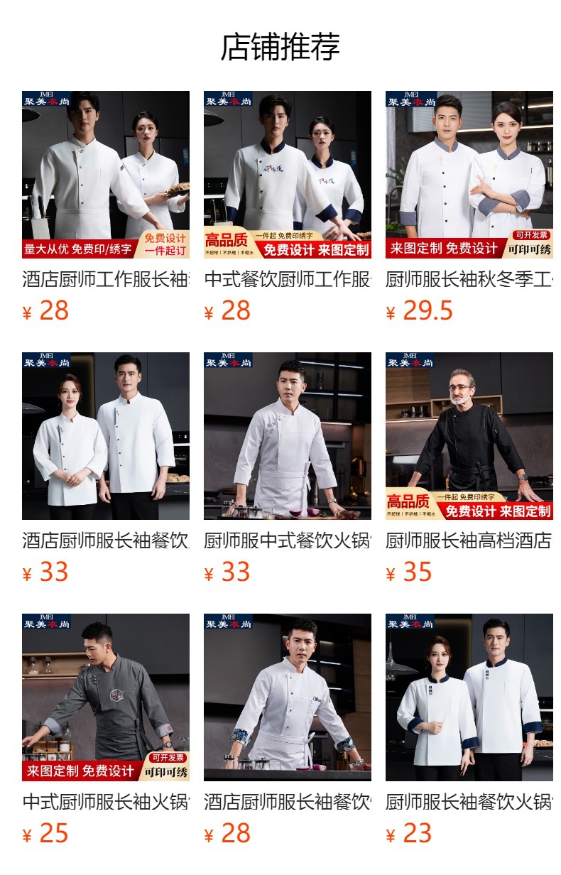 | Ocasiones aplicables | Ropa de chef |