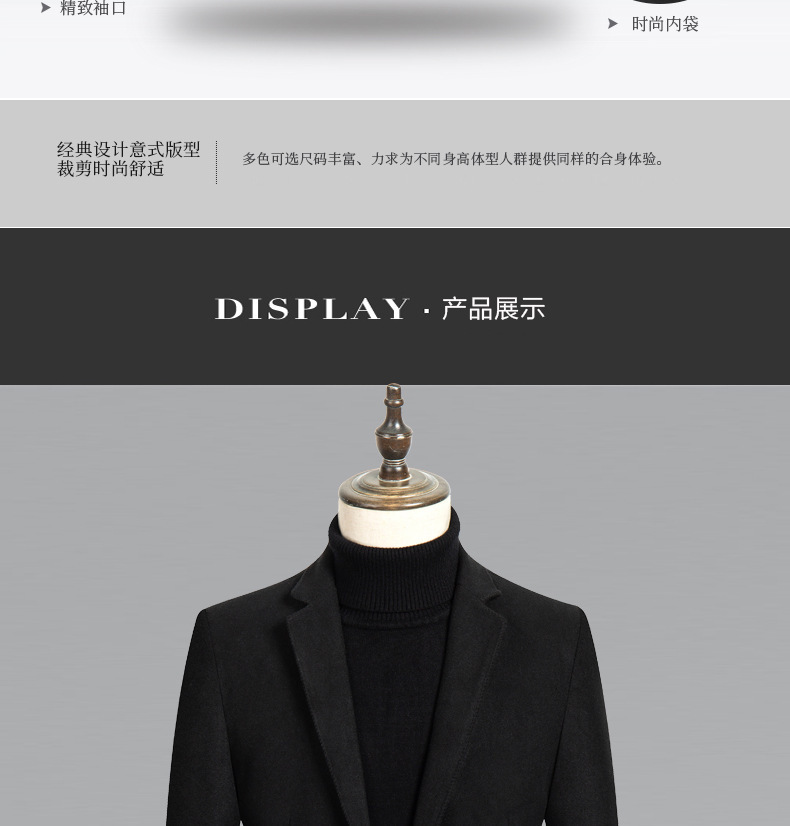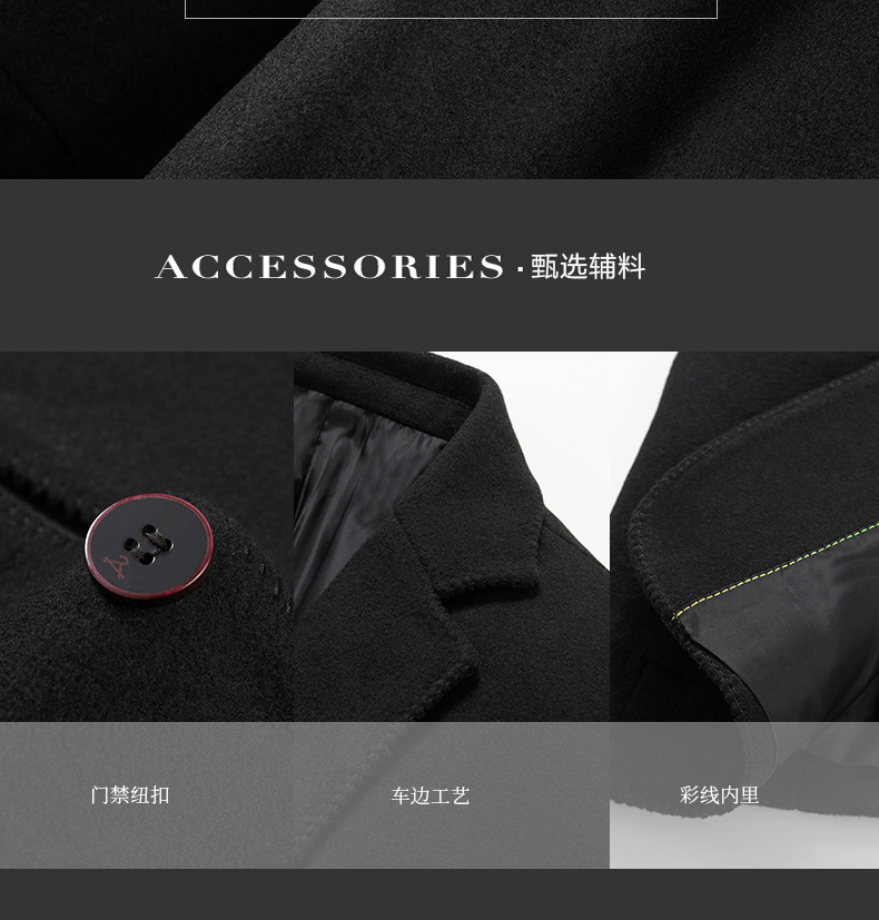 Comercio exterior europeo y americano 2025 otoño e invierno nuevo estilo de los hombres de lana cuello alto abrigo de longitud media bolsillo moda abrigo cómodo hombres