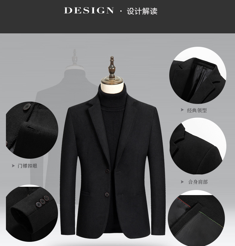 Casual de negocios 2022 Otoño e Invierno traje de hombre corto color sólido solapa abrigo de hombre de lana de Caballero de mediana edad