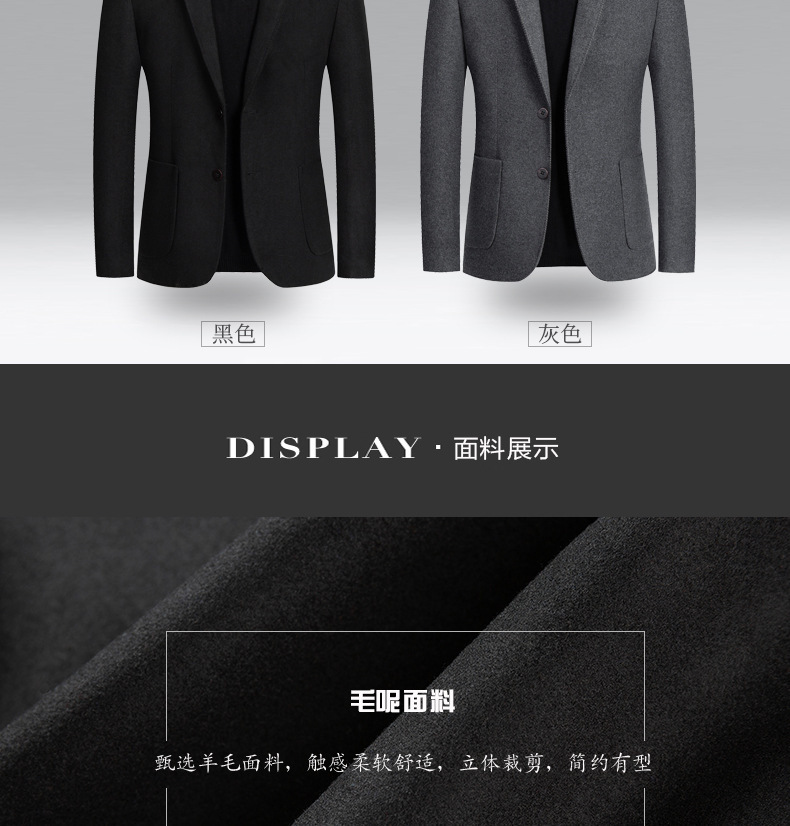 2023 Otoño e Invierno traje de hombre de lana abrigo de hombre traje de lana pequeño traje negro casual de hombre solo traje de hombre