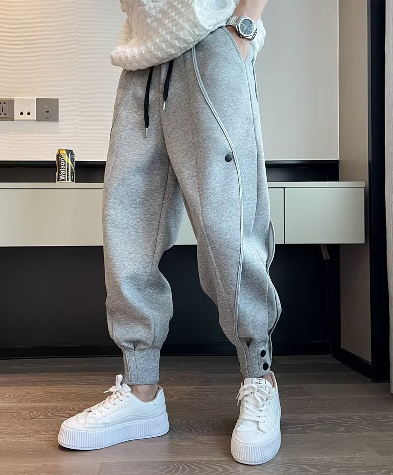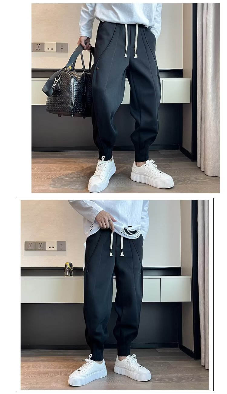 2022 nueva costura pantalones casuales marca de moda de los hombres breasted Pantalones deportivos flacos pantalones de harén sueltos con cordones