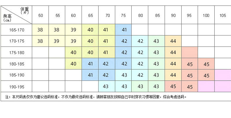 | Tamaño | 38 yardas [recomendado 50,00 kg-57,50 kg],39 yardas [recomendado 57,50 kg-65,00 kg],40 yardas [recomendado 65,00 kg-72,50 kg],41 yardas [recomendado 70,00 kg-75,00 kg],42 yardas [recomendado 75,00 kg-80,00 kg],43 yardas [recomendado 80,00 kg-85,00 kg],44 yardas [recomendado 85,00 kg-90,00 kg] |