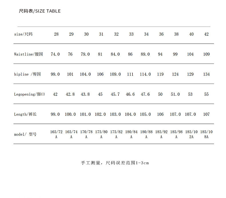 | Talla | 28,29,30,31,32,33,34,36,38,40,42 |