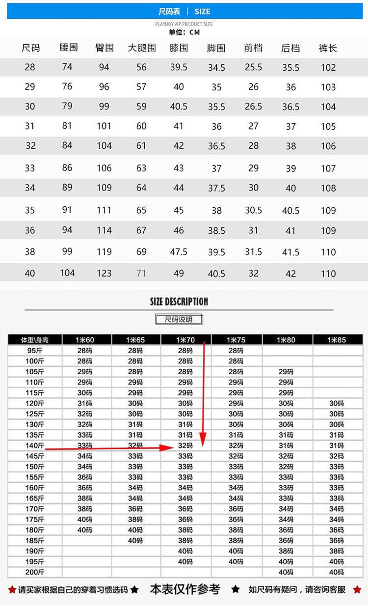| Talla | 28 yardas [2 pies 1] 90-100 kg,29 yardas [2 pies 2] 105-110 kg,30 yardas [2 pies 3] 115-120 kg,31 yardas [2 pies 4] 120-125 kg,32 yardas [2 pies 5] 125-135 kg,33 yardas [2 pies 6] 135-145 kg,34 yardas [2 pies 7] 145-155 kg,36 yardas [2 pies 8] 155-165 kg,38 yardas [2 pies 9] 170-180 kg,40 yardas [3 pies 0] 190-196 kg |